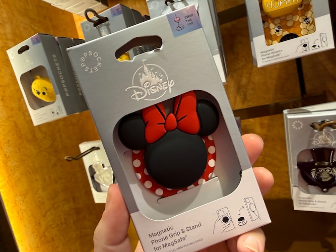 Disney PopSocket phone grips have arrived at Walt Disney World! This new line of phone grips and MagSafe-compatible phone wallets lets you carry your favorite Disney characters with you. Each PopSocket features a customizable top, so you can easily swap designs and mix and match for endless personalization options that bring a touch of Disney magic to your phone.