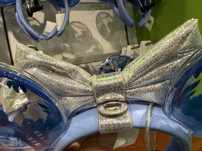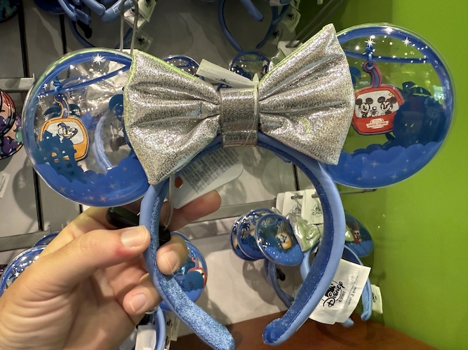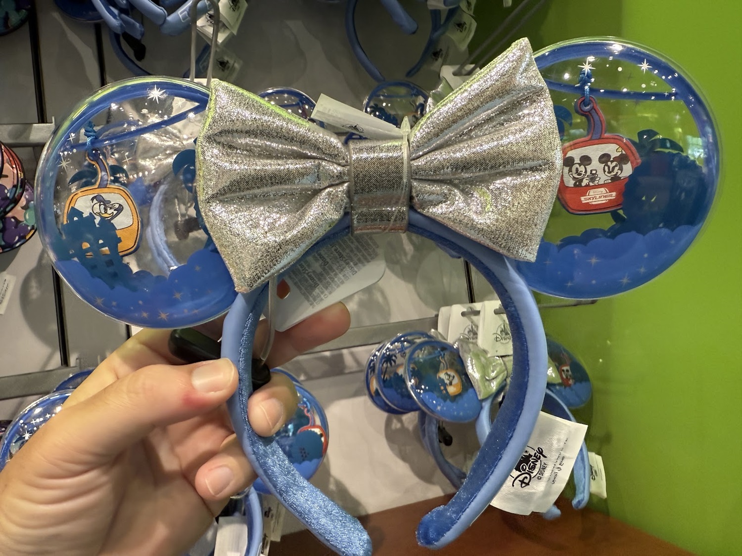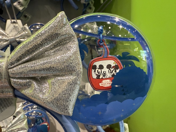 Spotted at Disney’s Pop Century Resort (though likely at the other official resorts on the Disney Skyliner line, like Disney’s Caribbean Beach Resort or Disney’s Art of Animation Resort, etc.), we found some Mouse Ears sporting some Disney Skyliner iconography and designs. Selling for $34.99 (as of press time, the mouse ears also feature a snap-on bow.