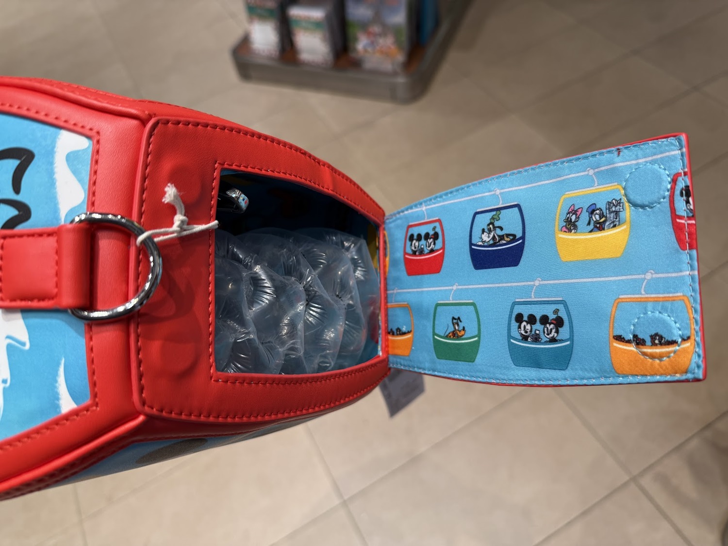 Loungefly bags are popping up across Walt Disney World and the rest of the Disney Parks, so why would the Disney Skyliner be left out?! This bag is shaped like a Skyliner vehicle, opening at the top and featuring art of various vehicles and colors aboard the line. Fans can pick this one up for $75.00.