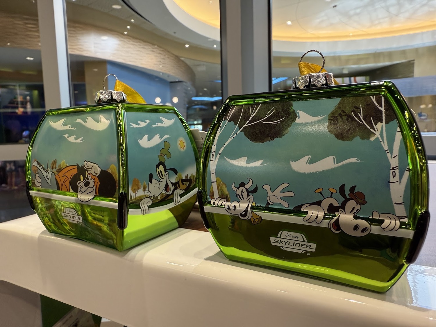 The aesthetic (sans handle) carries over to a number of Ornaments as well, featuring art as seen on the vehicles. Fans can remember their favorite gondola car through a variety of options, all at $29.99