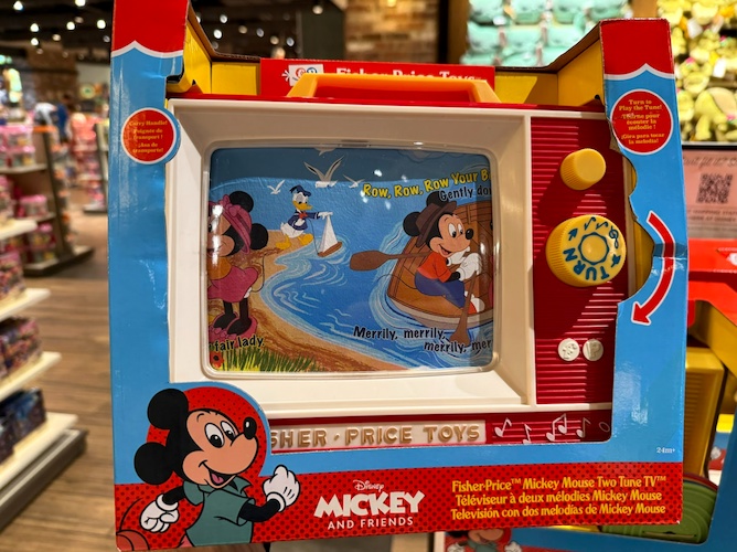 - A full collection of vintage-inspired Fisher-Price toys is now prominently displayed and available for purchase at World of Disney.