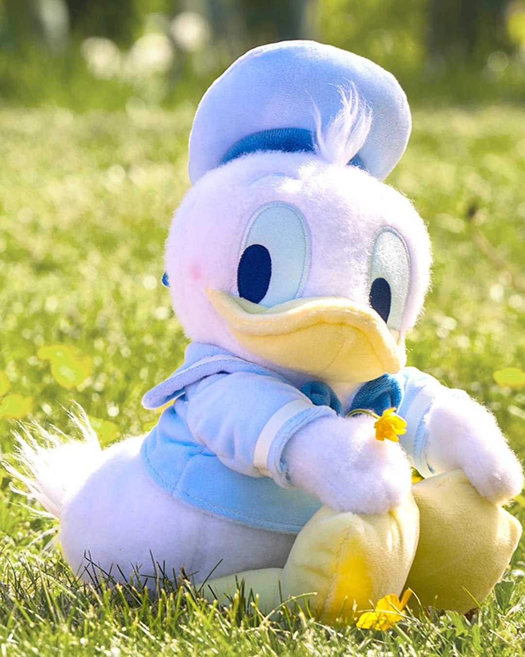 - The other plush looks like a baby Donald and features our pal in a sitting position. This plush features soft fur, and a pastel coloring and is so stinking cute!