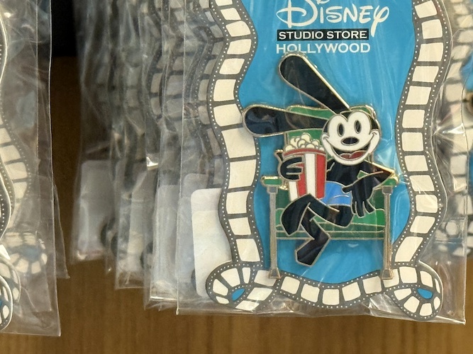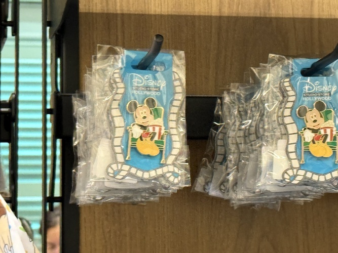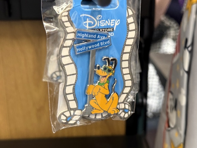 The real draw though are the open-edition pins that can be found in this location. Each features a classic or favorite character sitting in a theater seat. Others feature characters alongside the famous El Capitan Theatre marquee. As a reminder of where these came from, a number of the pins also feature characters at the road signs marking Hollywood and Highland.