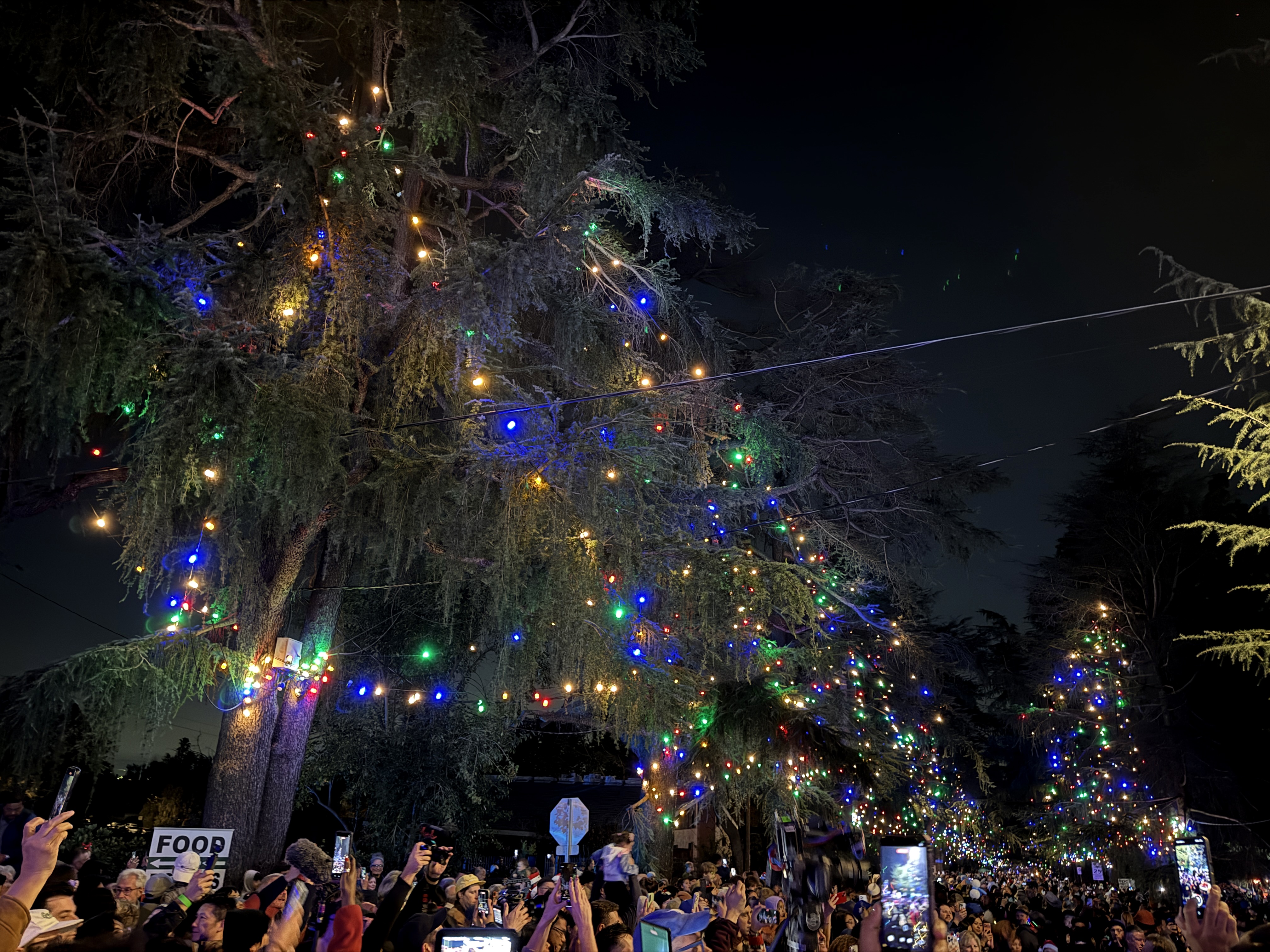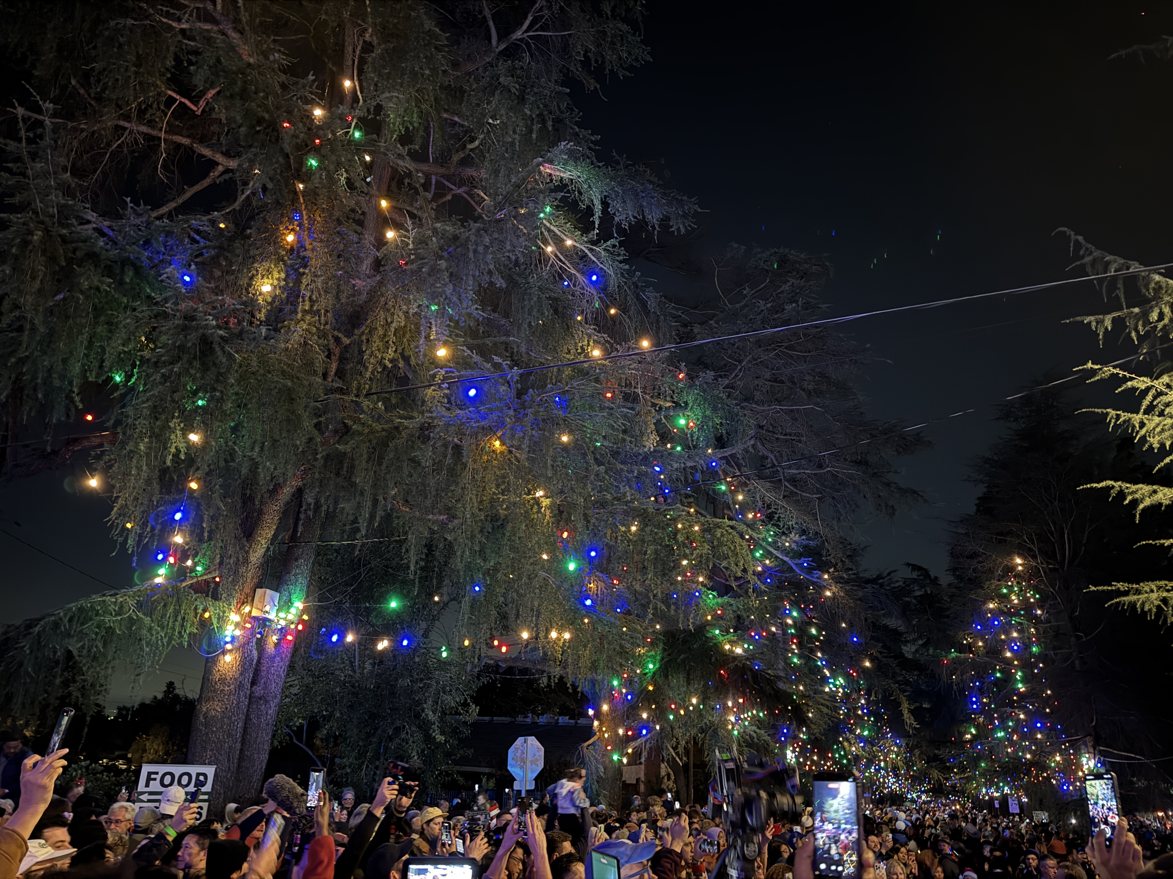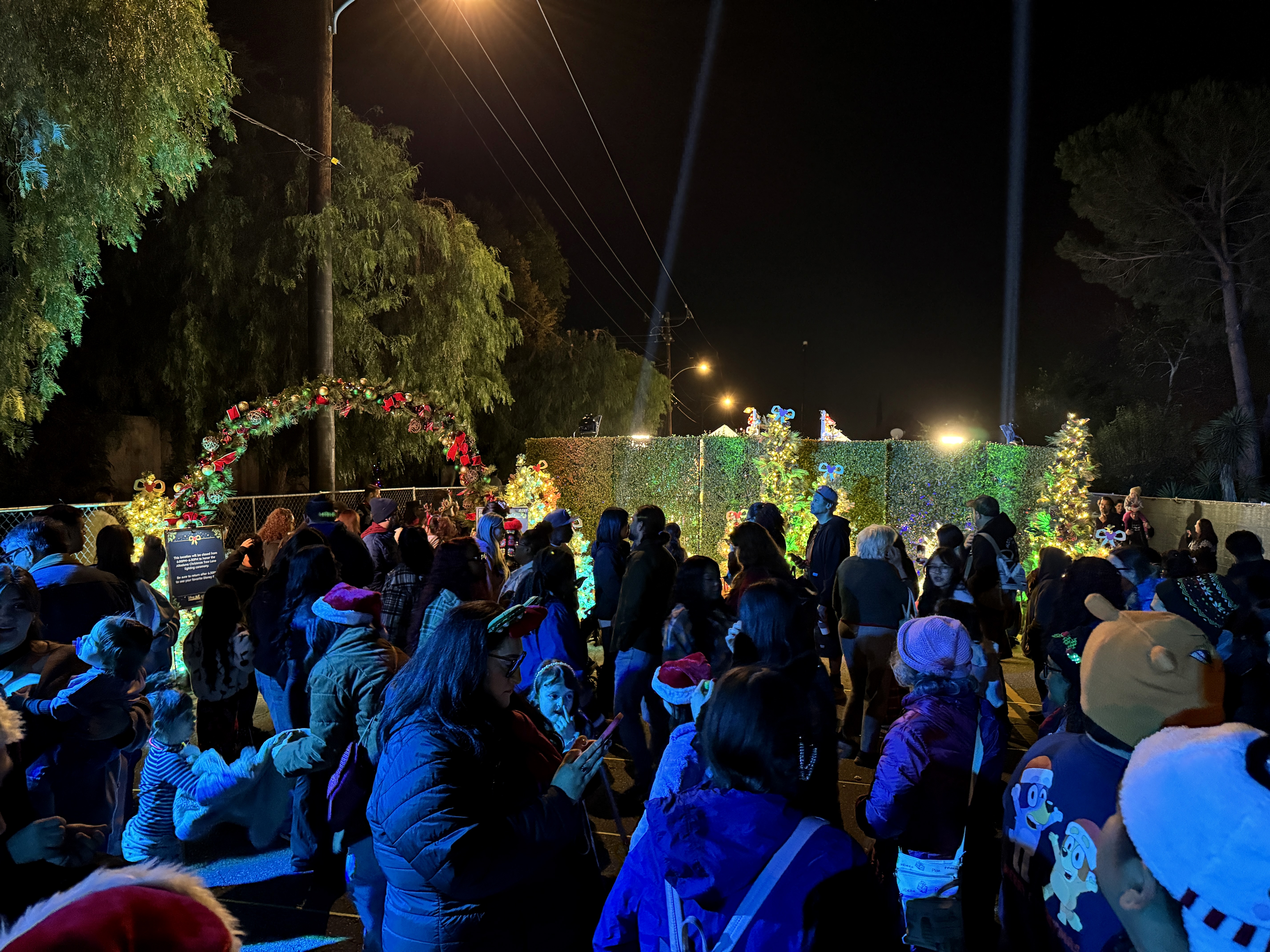 But outside of that experience, the main event of this evening's festivities was the Christmas Tree Lane Lighting Ceremony, a tradition in Altadena dating back more than a hundred years. This year's ceremony was hosted by actor Edward James Olmos from Battlestar Galactica, Selena, and Stand and Deliver.