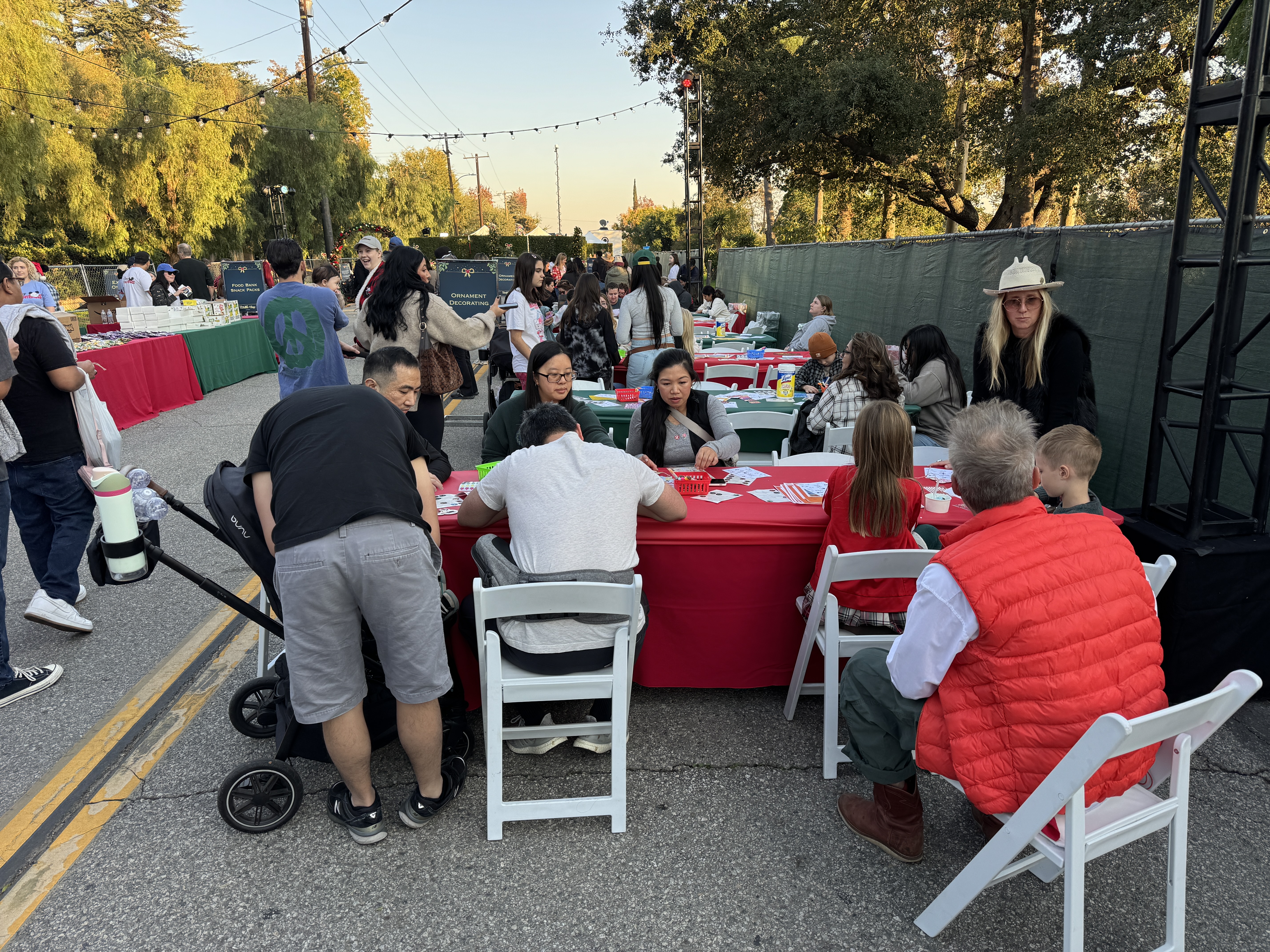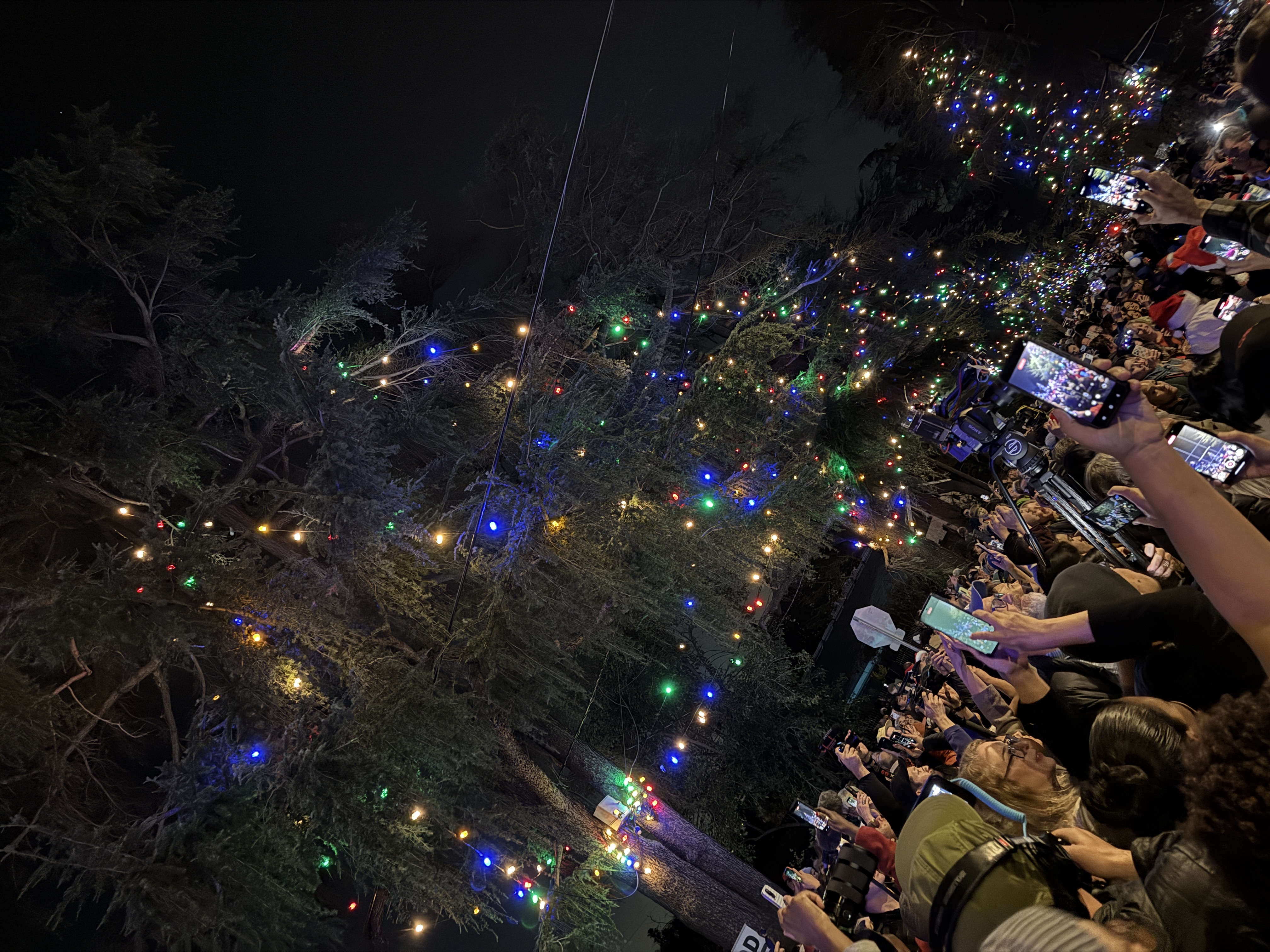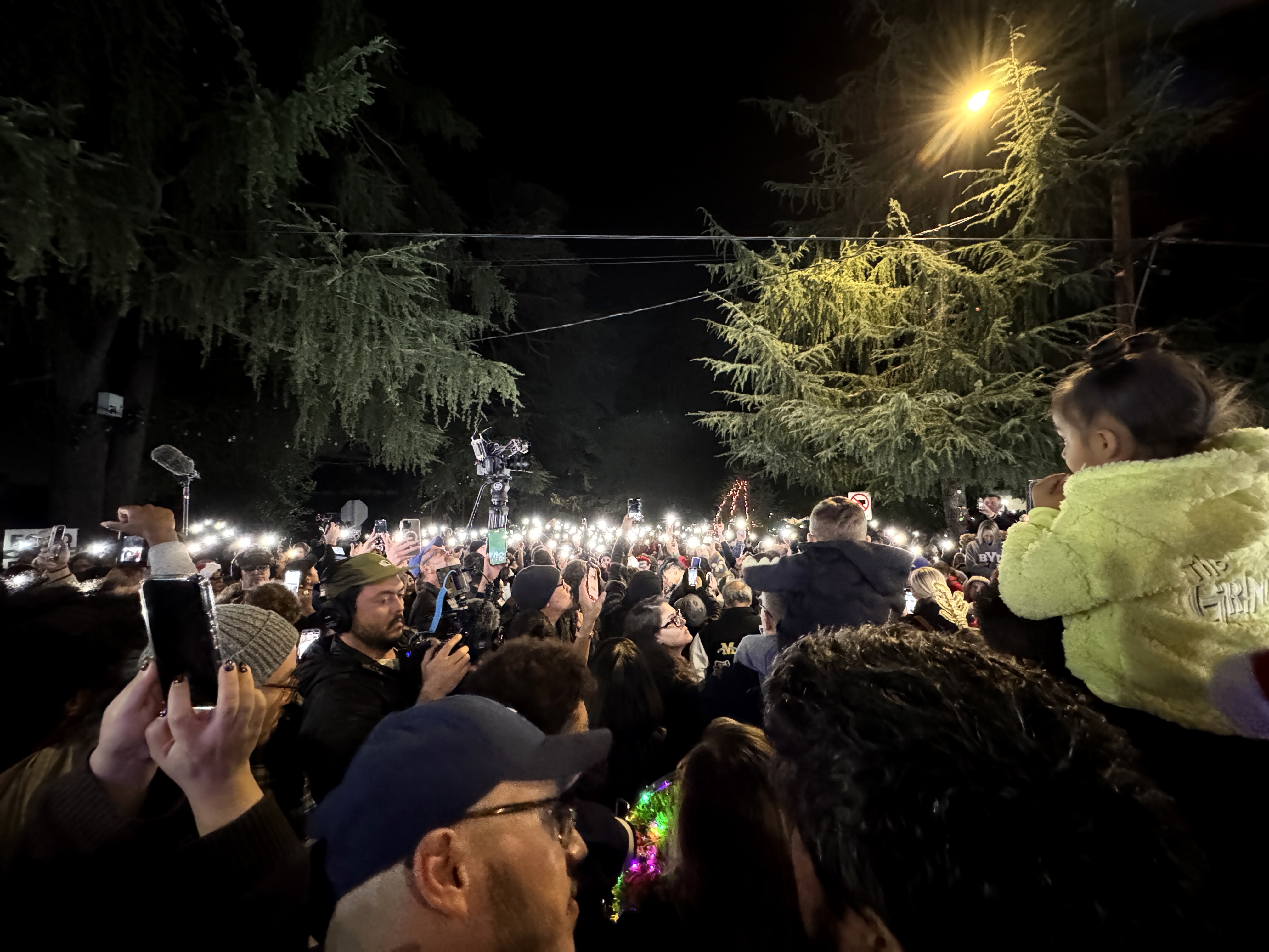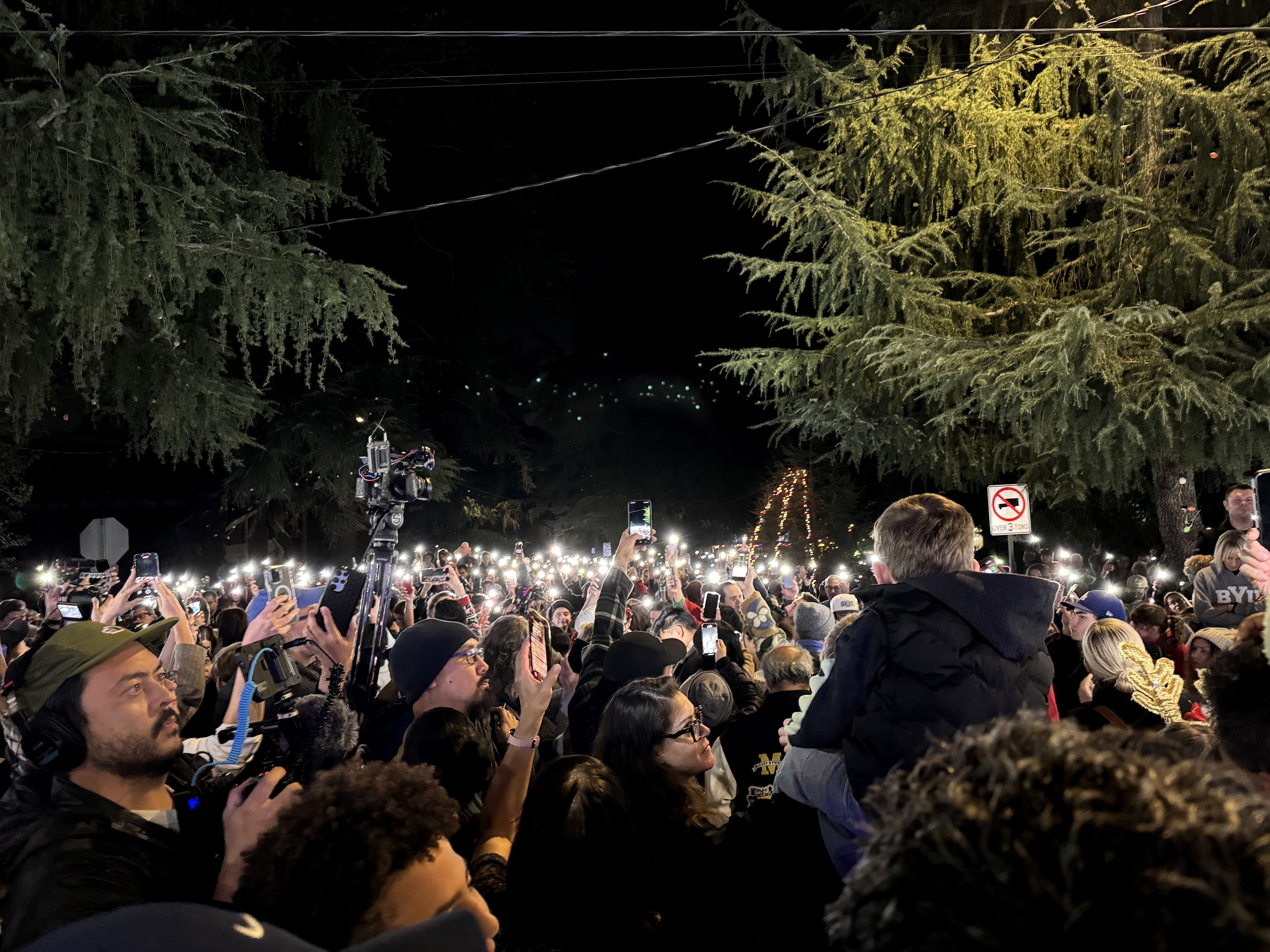 But outside of that experience, the main event of this evening's festivities was the Christmas Tree Lane Lighting Ceremony, a tradition in Altadena dating back more than a hundred years. This year's ceremony was hosted by actor Edward James Olmos from Battlestar Galactica, Selena, and Stand and Deliver.