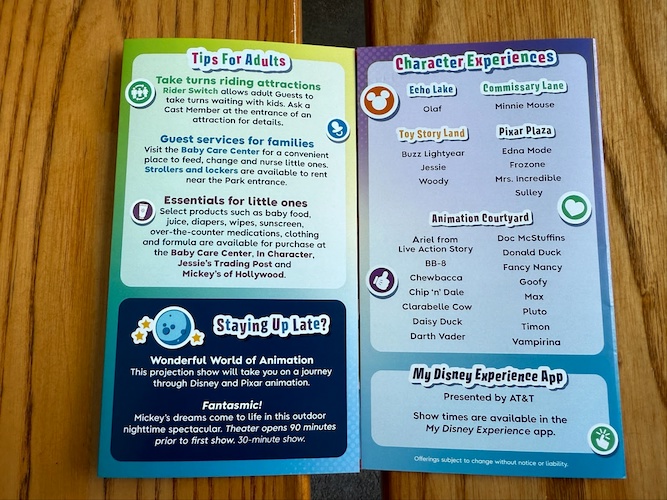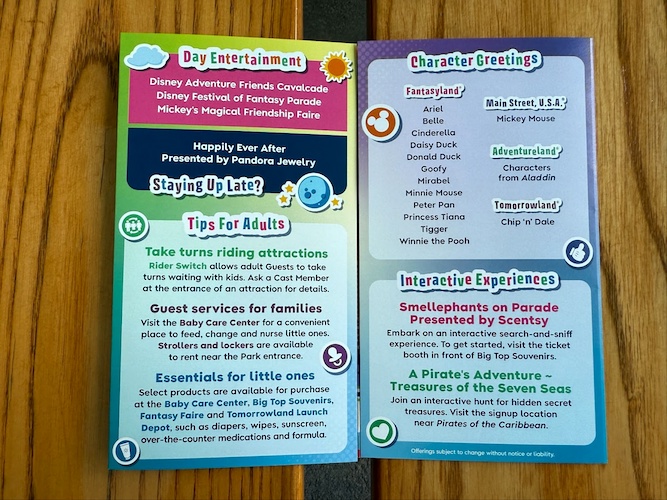 Each map, one for every park, includes tips and tricks for those traveling with young kids, including highlighting the new entertainment offerings available at each park.