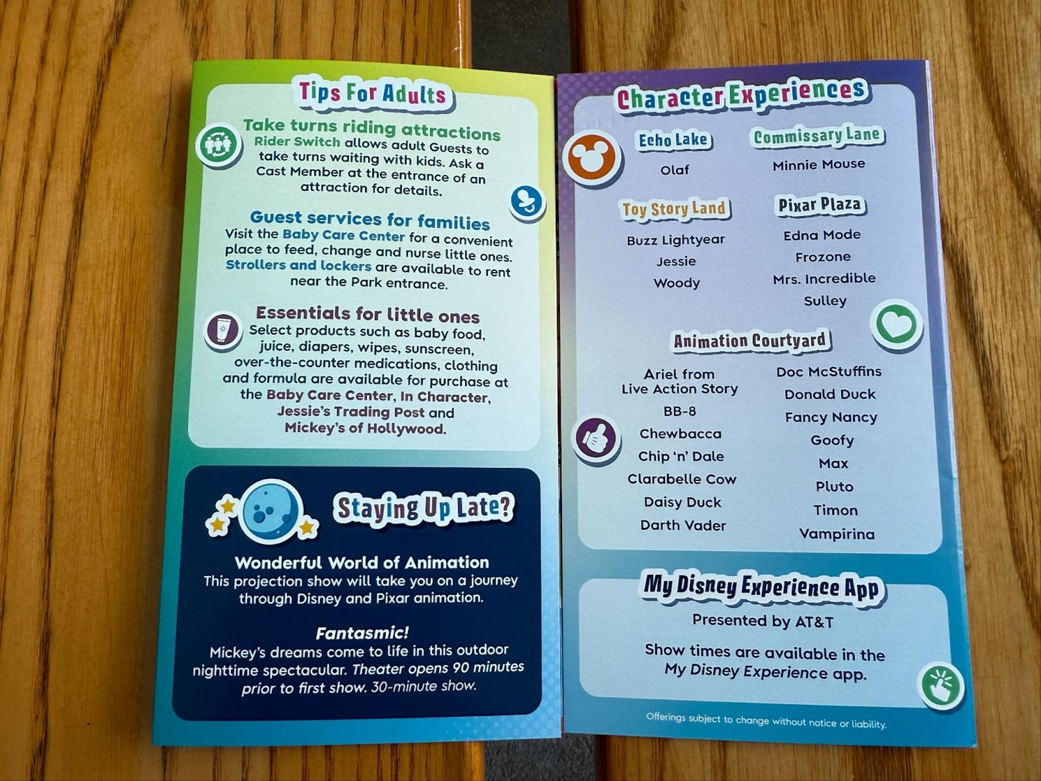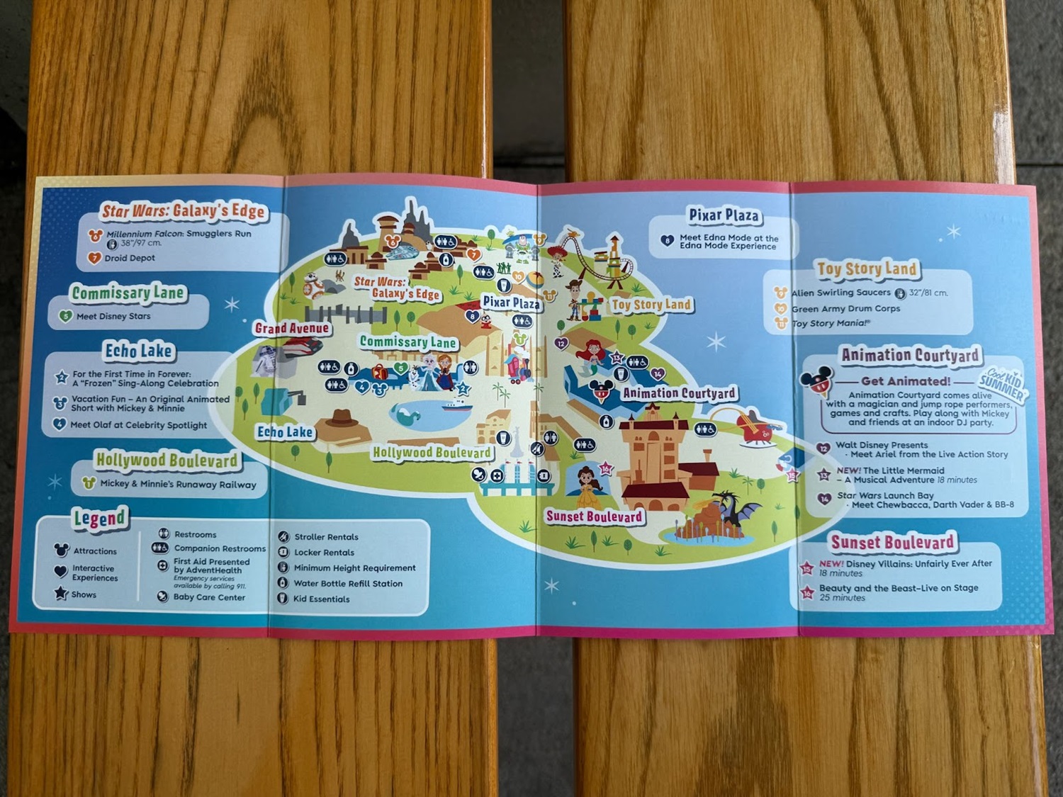 Within each map, the viewable attractions and experiences have been simplified, only including options that everyone in the family can experience together. (i.e. Sunset Blvd lists Beauty and the Beast: Live On Stage and the new Villain show, but doesn’t mention Tower of Terror)