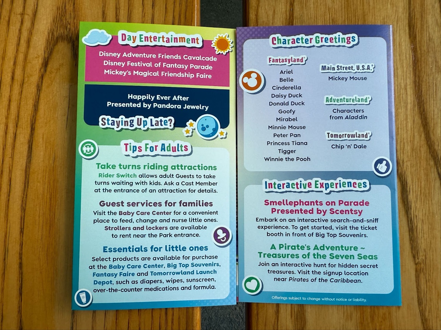 Each map, one for every park, includes tips and tricks for those traveling with young kids, including highlighting the new entertainment offerings available at each park.