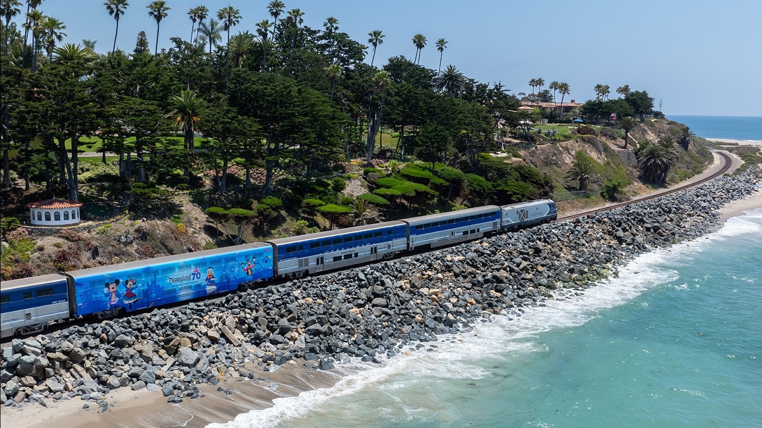 - Amtrak is getting in on the celebration by inviting guests aboard the Amtrak Pacific Surfliner to experience a whimsical limited-time train wrap rolling down the Southern California coast, designed to bring a bit of Disney joy to every leg of the journey.