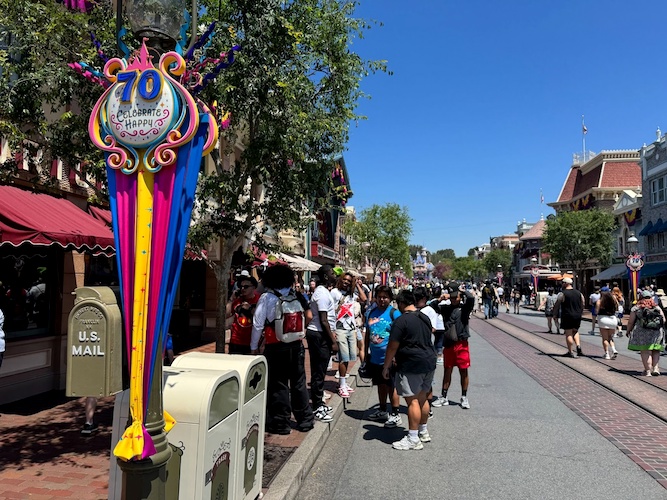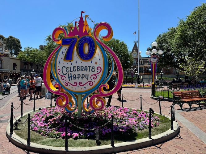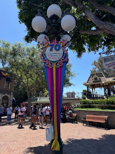 The Disneyland Resort 70th Celebration officially kicks off one week from today on May 16th, but visitors to Disneyland Park today can already see many signs of the celebration with plenty of decor installed.