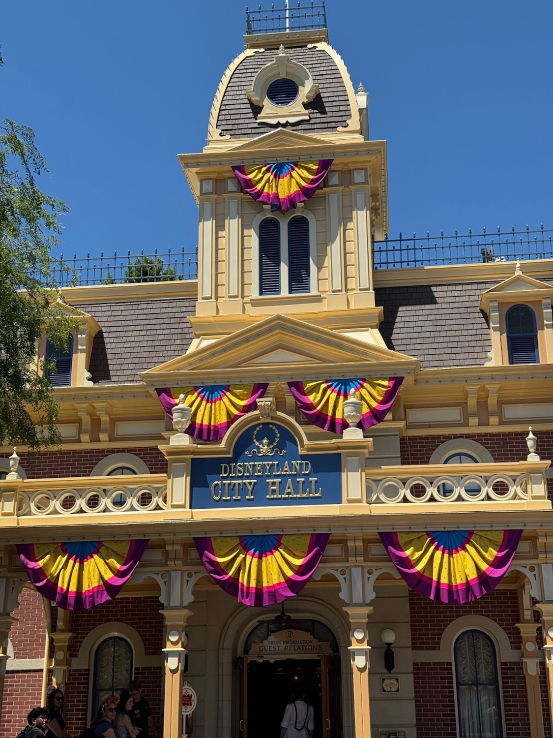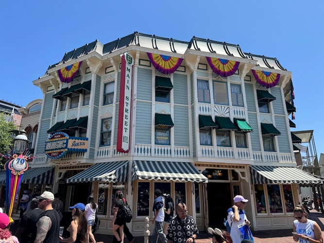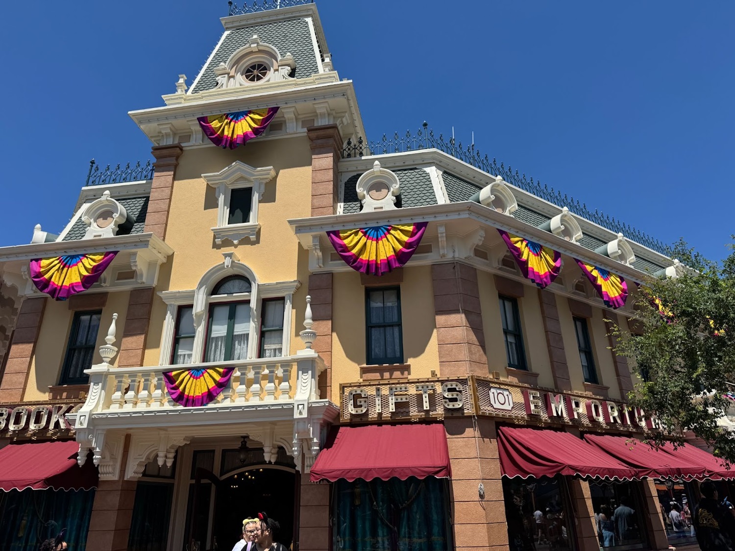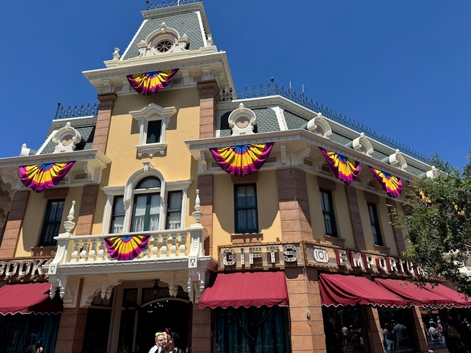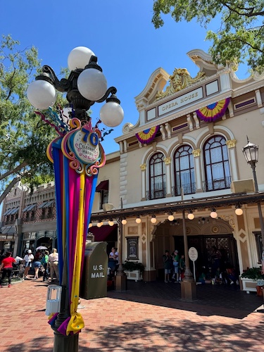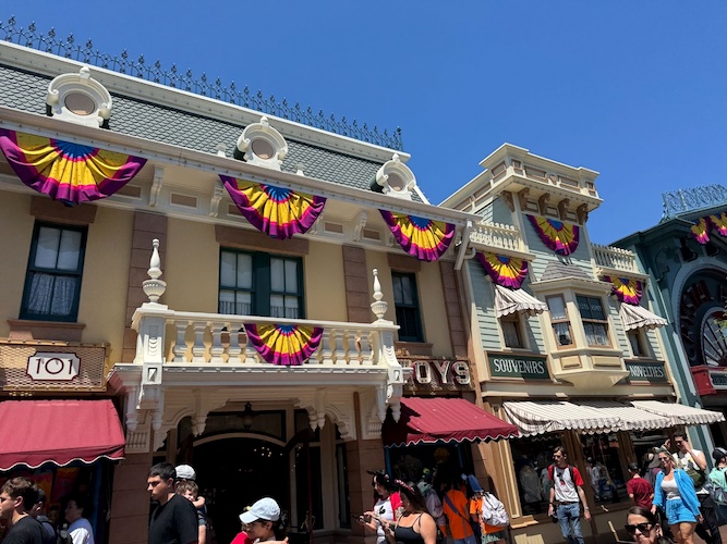 All up and down Main Street, U.S.A., you’ll now find multi-colored banners and bunting in the pink, blue and yellow color scheme of the celebration.