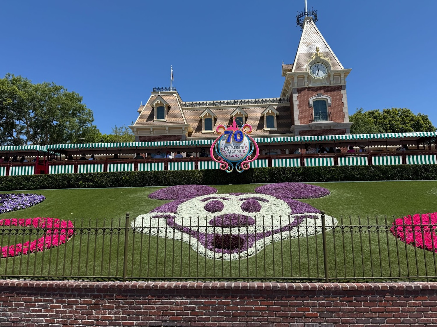 Stepping through the gates of Disneyland Park, the iconic floral Mickey welcomes you to the celebration with a display of vibrant flowers.