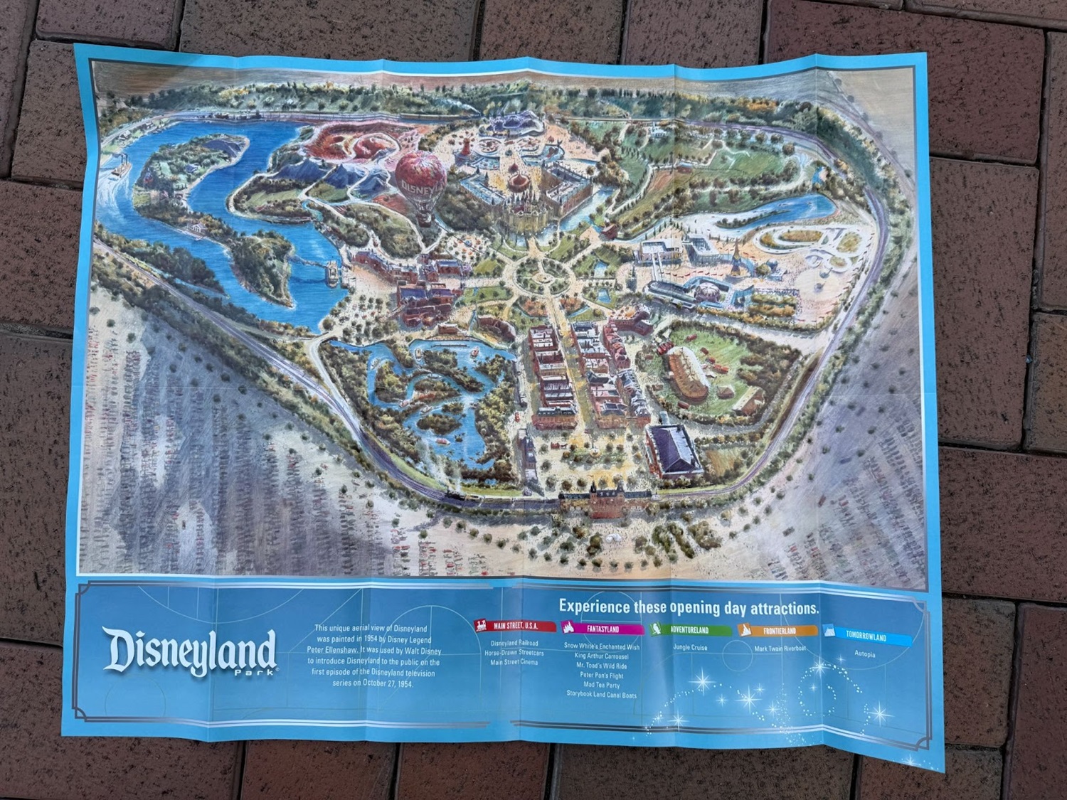 As with the Disneyland map, completely unfolding the guide will give you the same Peter Ellenshaw map of Disneyland from 1954.