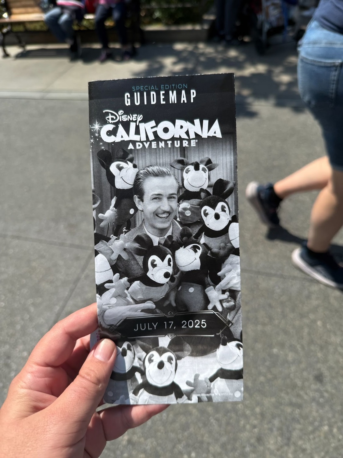 Those across the Esplanade entering Disney California Adventure will find a different commemorative map for today as well, featuring a younger Walt Disney alongside a slew of Mickey Mouse plush.