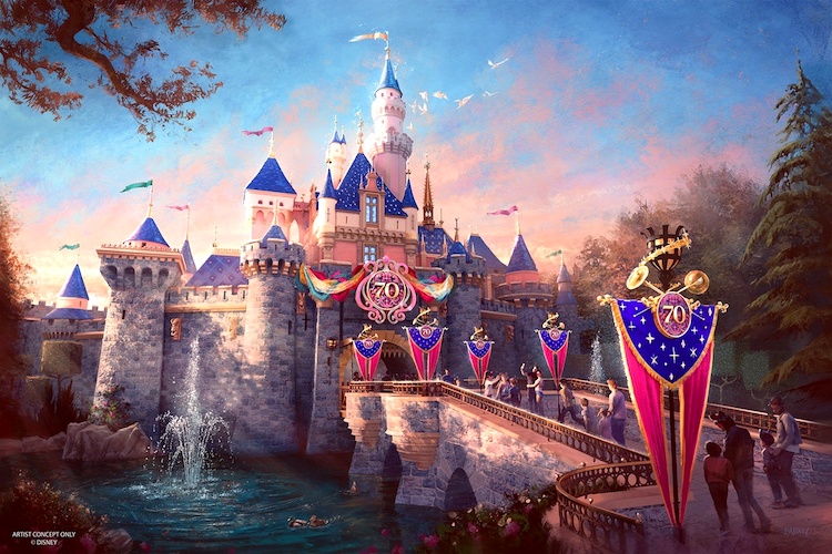 - More 70th anniversary decor will greet guests throughout the Disneyland Resort, from the Main Street Train Station and Town Square, to Downtown Disney and beyond. Check out more concept art for what’s to come here.