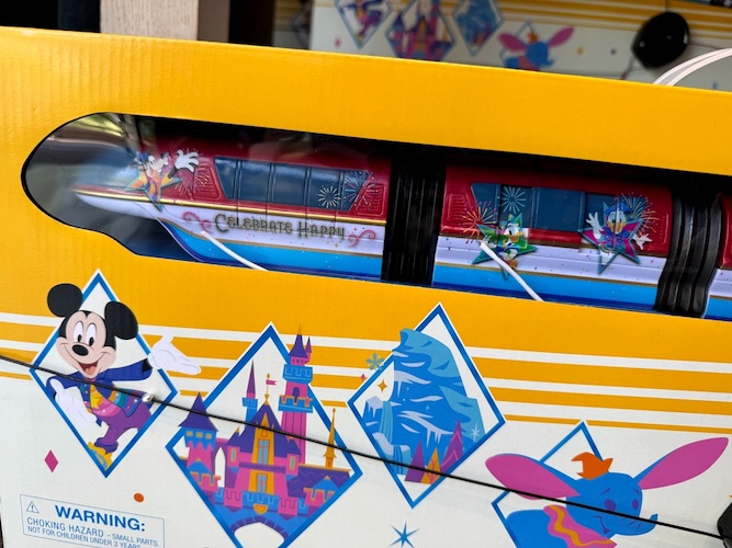The collectible features one of the Disneyland 70th wrapped monorails.