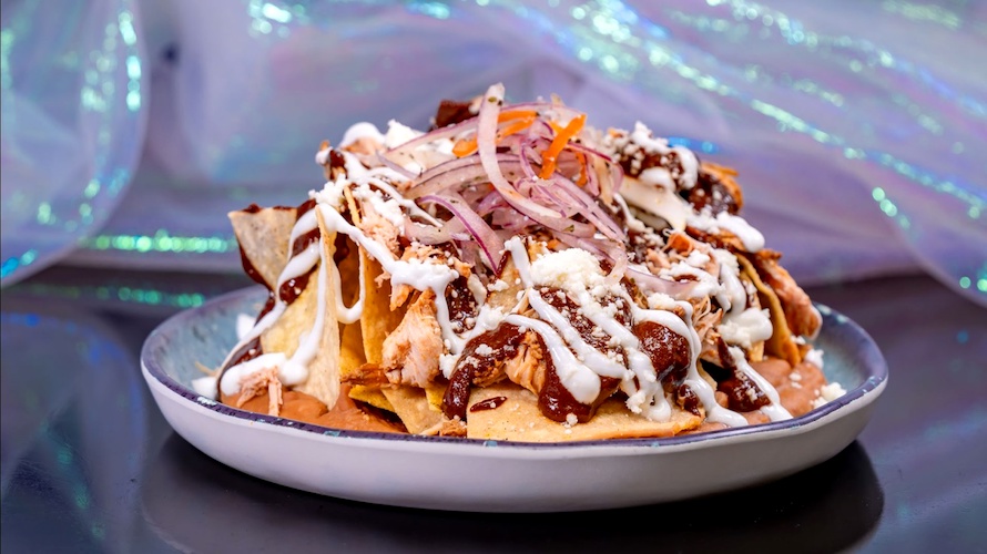 - Chicken Mole Nachos: Shredded chicken, beans, tortilla chips, mole, pickled red onion and habaneros, crema, and cotija cheese (New)