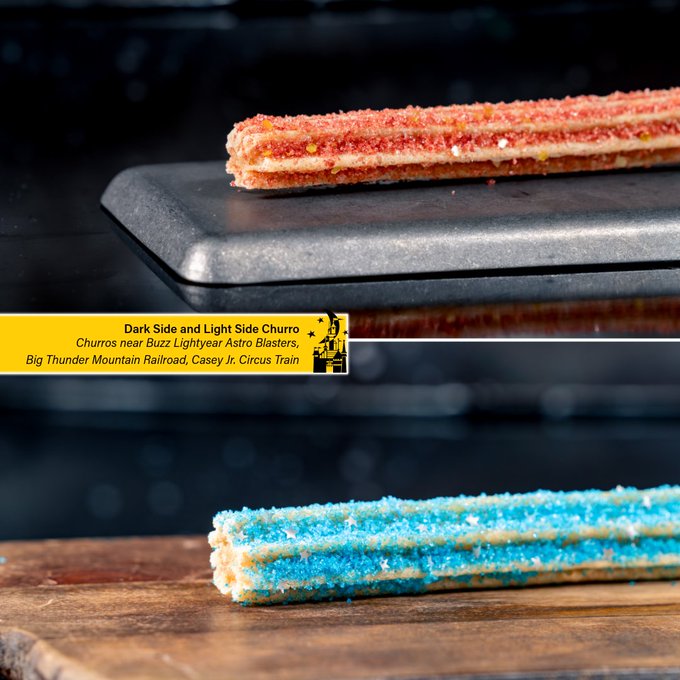 - Dark Side and Light Side Churro: Churros near Buzz Lightyear Astro Blasters, Big Thunder Mountain Railroad, Casey Jr. Circus Train
