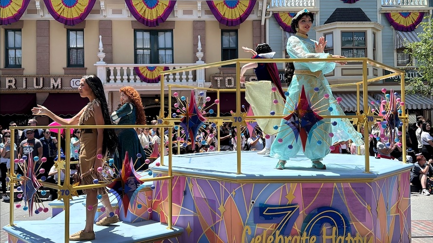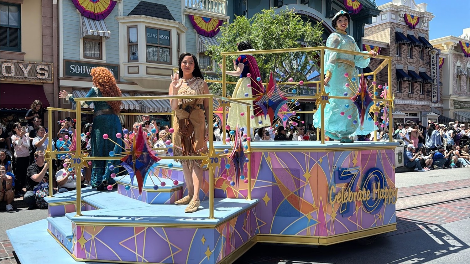 Next up comes a float featuring various Disney Princesses, such as Merida, Pocahontas, Snow White and Jasmine.