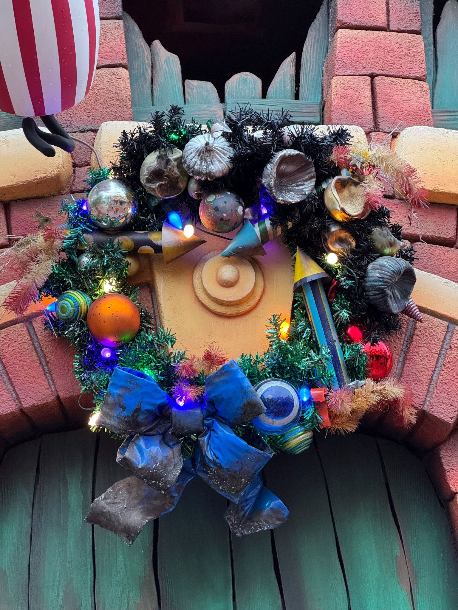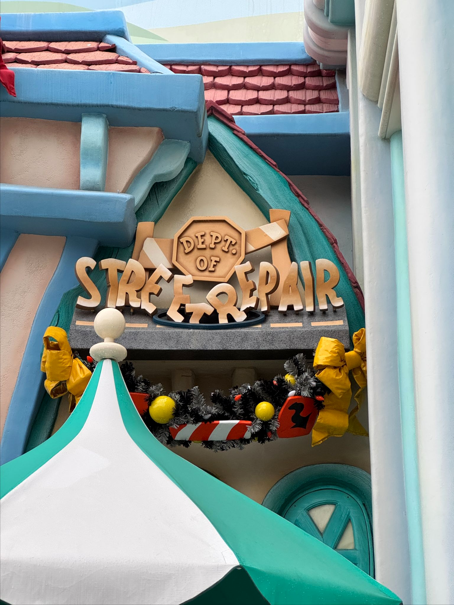 - The entire area is adorned with themed garland, topping many of the buildings in the area.