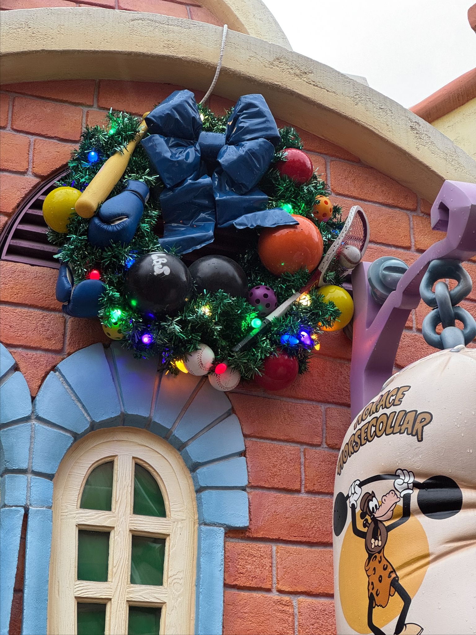 - The entire area is adorned with themed garland, topping many of the buildings in the area.