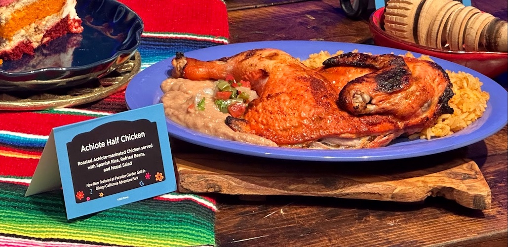 - Achiote Half Chicken: Roasted achiote-marinated chicken served with Spanish rice, refried beans, and nopal salad (New)