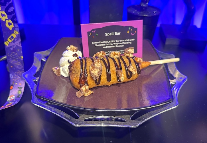 - Spell Bar: Batter-fried SNICKERS bar on a stick with chocolate drizzle, whipped topping, and roasted peanuts (New)