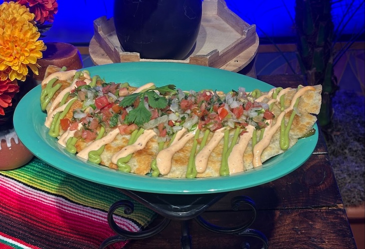 - Loaded Chicken Quesadilla with achiote chicken and roasted peppers & onions, topped with chipotle crema, guacamole, and pico de gallo (New)
