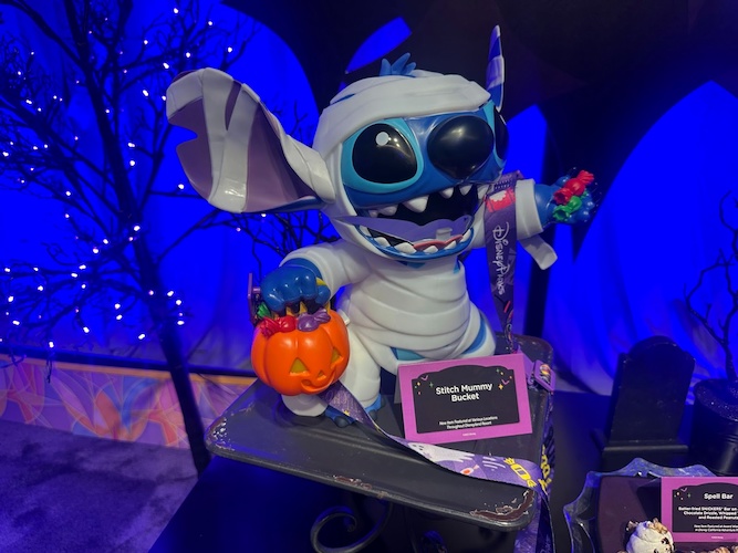 The adorable Stitch Mummy Popcorn Bucket can be found at various locations throughout the Disneyland Resort.