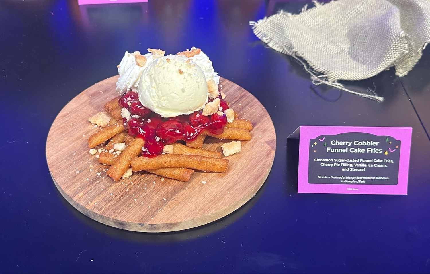 - Cherry Cobbler Funnel Cake Fries: Cinnamon sugar-dusted funnel cake fries, cherry pie filling, vanilla ice cream, and streusel (New)