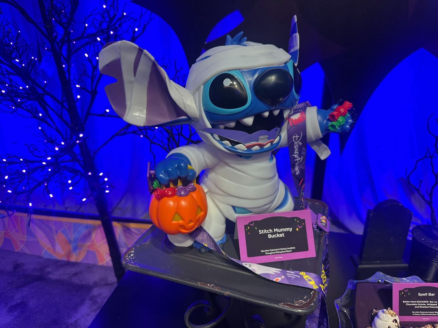 The adorable Stitch Mummy Popcorn Bucket can be found at various locations throughout the Disneyland Resort.