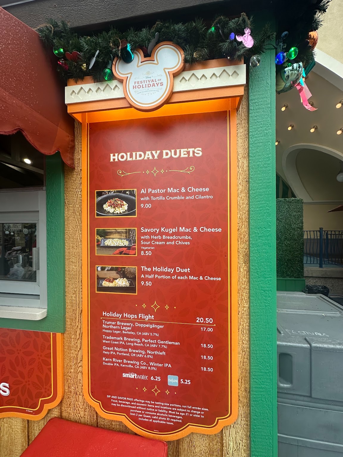 Festival of the Holidays at Disney California Adventure adds global flavor to the mix with dishes that celebrate traditions from Christmas, Navidad, Diwali, Hanukkah, Kwanzaa, and more, plus distinctive beverages and sweet treats. Whether you’re indulging in festive sweets like the Mickey-shaped Gingerbread Cookie or savoring savory innovations at the food kiosks, the season’s menu invites you to explore and celebrate with every bite. Let’s take a look at some of the novelties and food offerings in store for the holiday season.