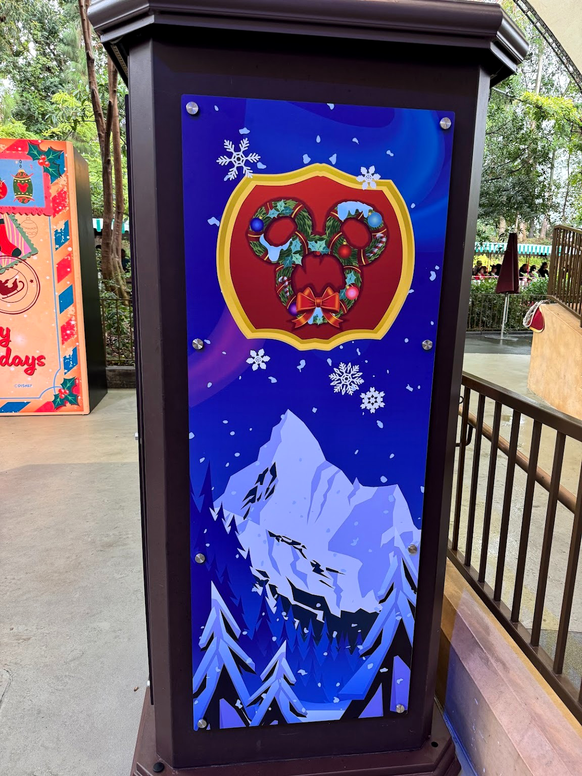 Fun props are peppered throughout the space, allowing the perfect backdrop for some festive holiday photos. One prop even features the outline of Goofy in the snow with some skis nearby, referencing the classic animated short, The Art of Skiing.