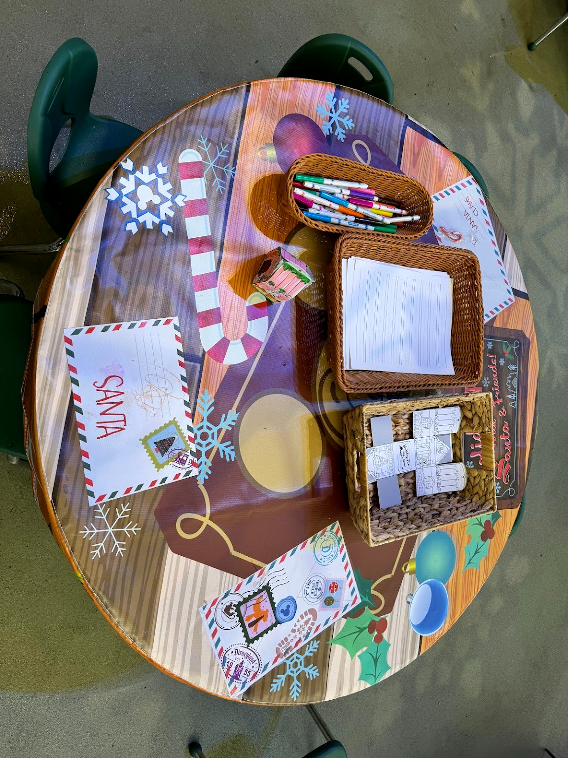 Toward the top of the theater, guests can hang out and find some fun crafts, activities, and games to participate in, perhaps while waiting for their favorite character to show up or enjoy the festive ambience.