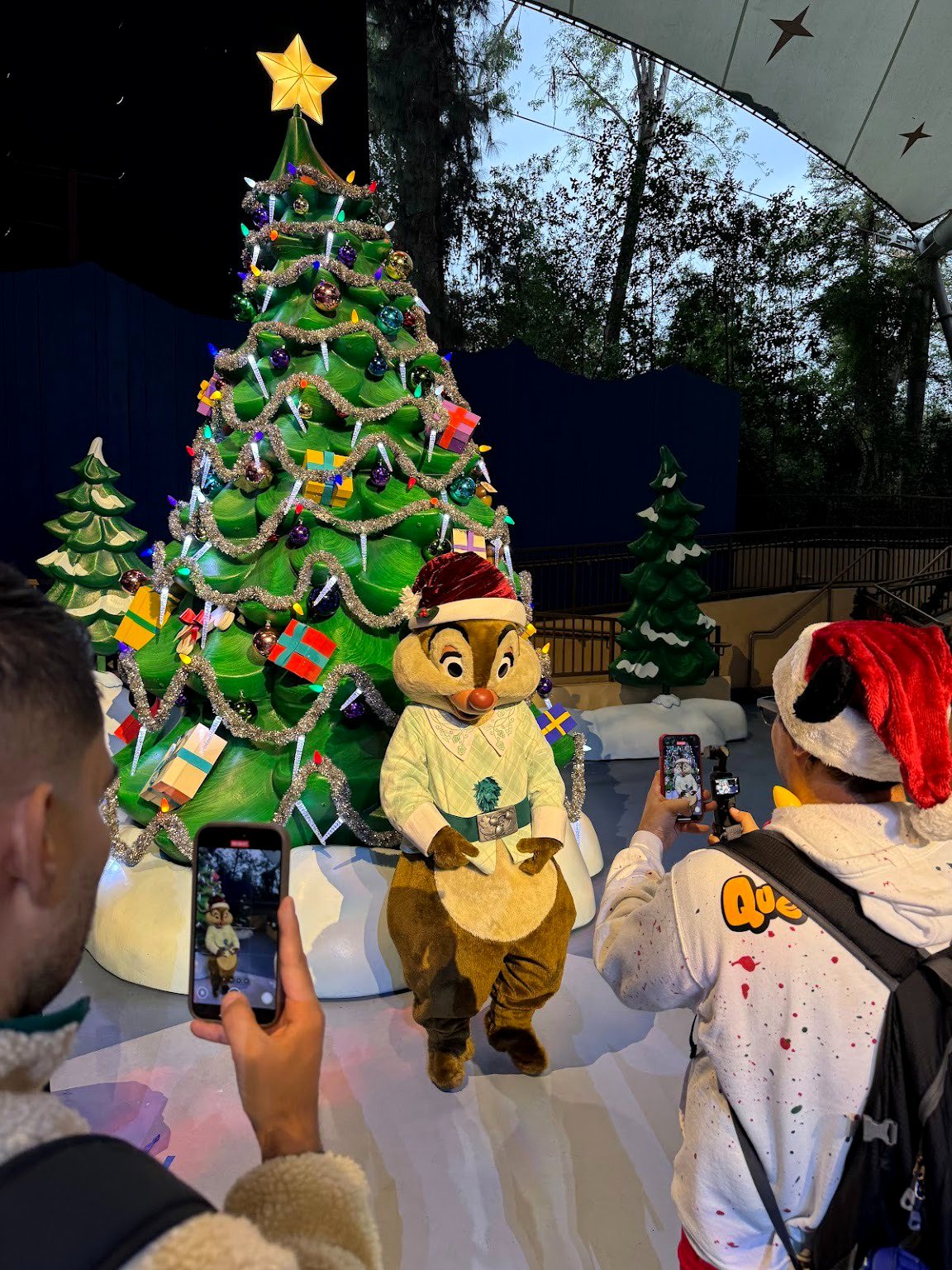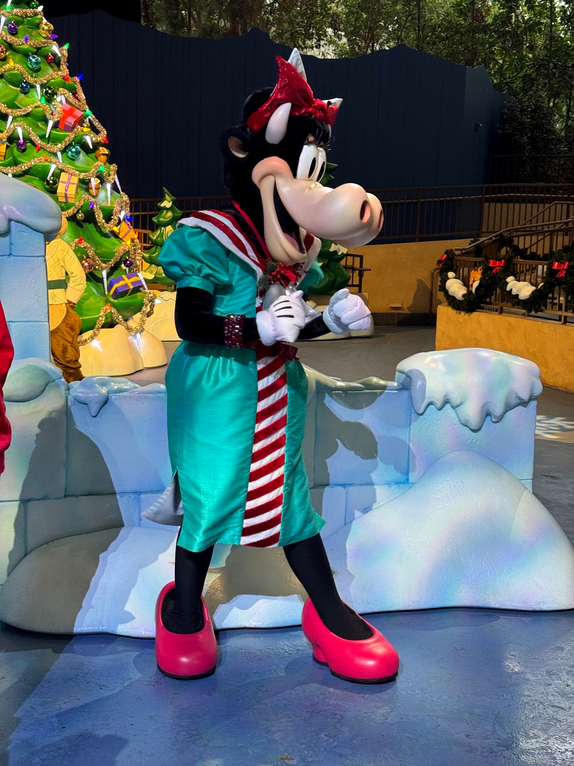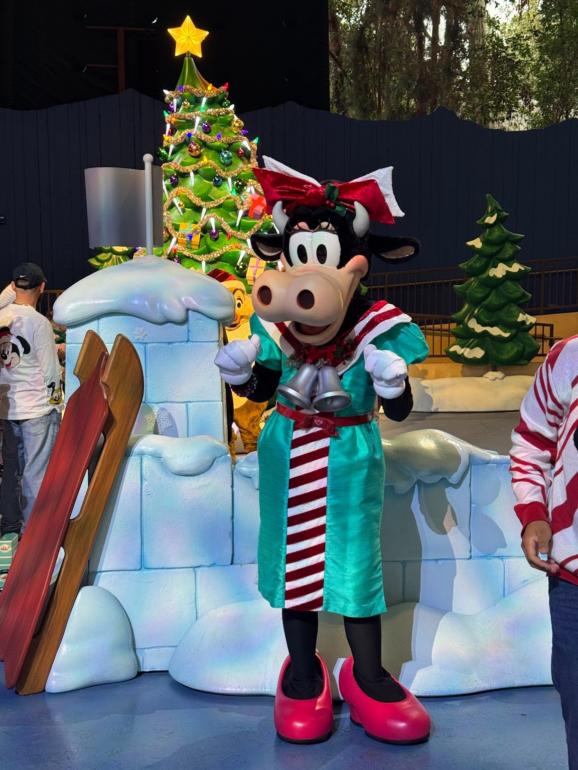 Those who have experienced the Pixar Pals Playtime Party in recent months and years might have some kind of an idea of what this experience as a whole is, though this has a lot less Pixar and a lot more seasonal fun! Guests can find characters throughout the space. On our visit, we spotted Jiminy Cricket, as well as Chip and Dale and Clarabelle, all decked out in their holiday finest.