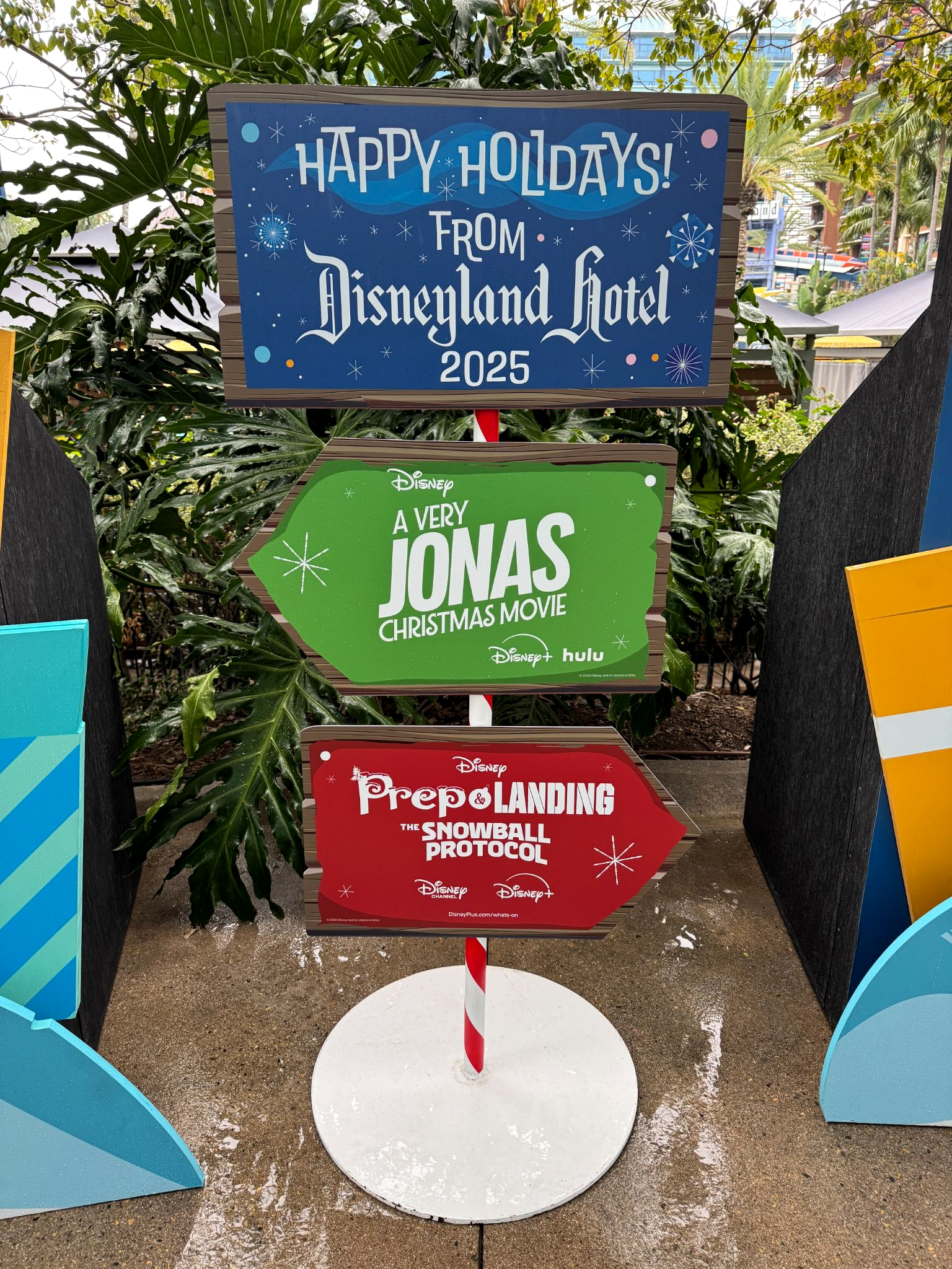 - Over at Disneyland Hotel, a new photo opportunity has appeared, celebrating two of Disney+’s new holiday specials, including the freshly released A Very Jonas Christmas Movie and the upcoming Prep & Landing: The Snowball Protocol.