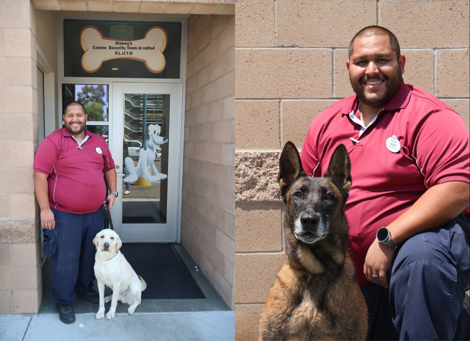 Amongst the team is Nicholas Hernandez, who has worked as a kennel technician for four years. Starting his role at the House of Mouse as a security guest screener, Nicholas quickly realized his passion for safety went beyond his role. Wanting to become a K-9 handler, Nicholas transferred to kennel technician in 2021, learning a greater appreciation for both the importance of security and working with the dogs.