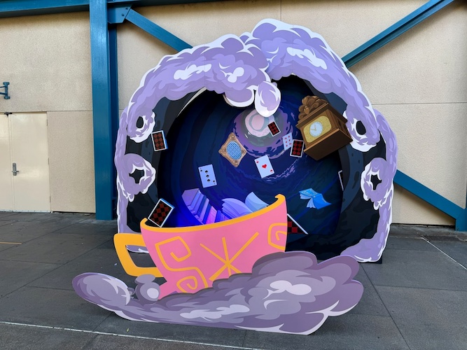 Once inside the Courtyard, guests can line up for three different photo ops – a Magic Key backdrop, a Pirates of the Caribbean backdrop and an Alice in Wonderland backdrop.