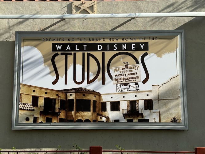 Along the wall of the Hyperion Courtyard, we spotted these new posters celebrating the many experiences of Disney California Adventure in a very retro style, as well as the original home of the Walt Disney Studios.