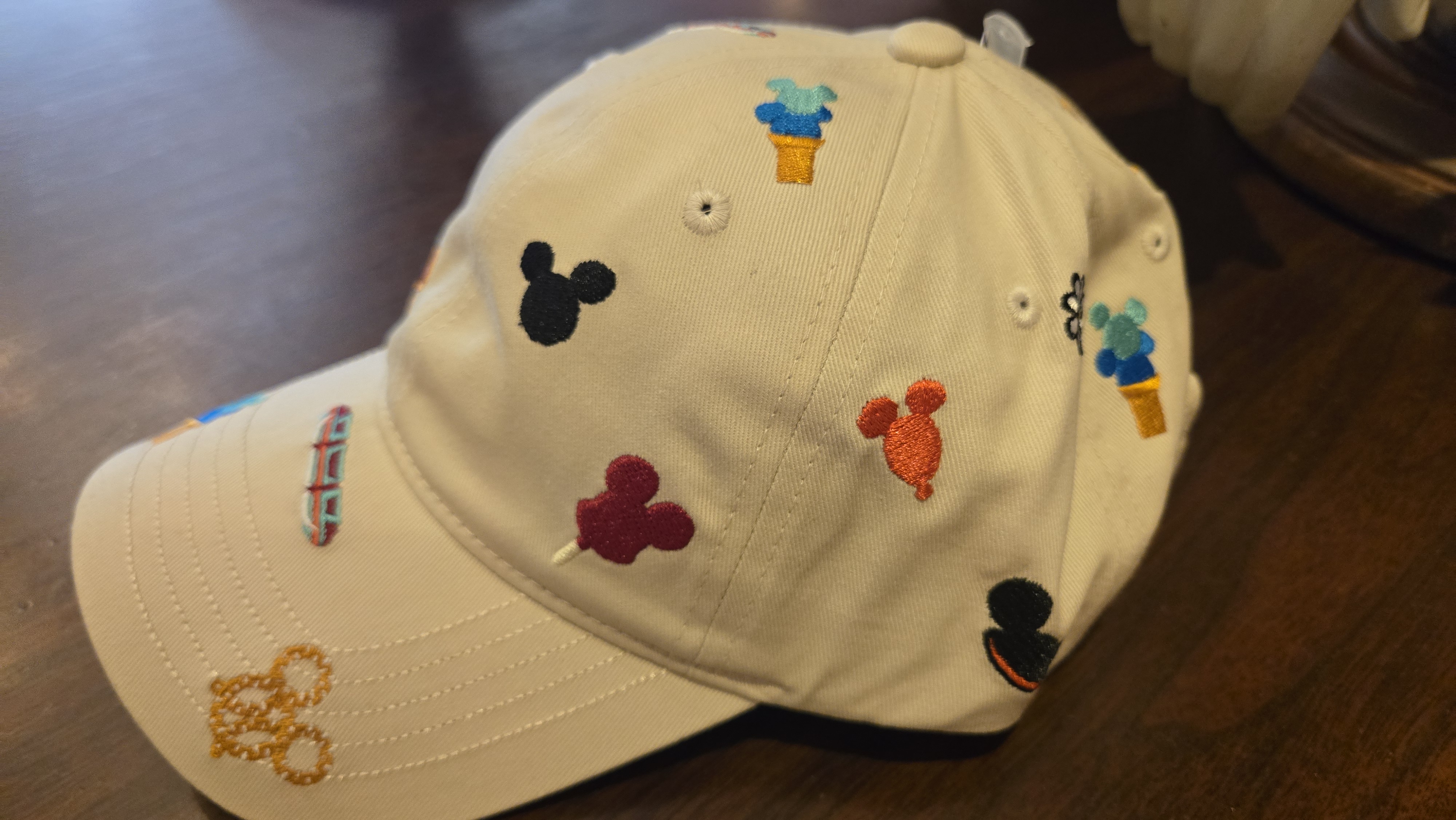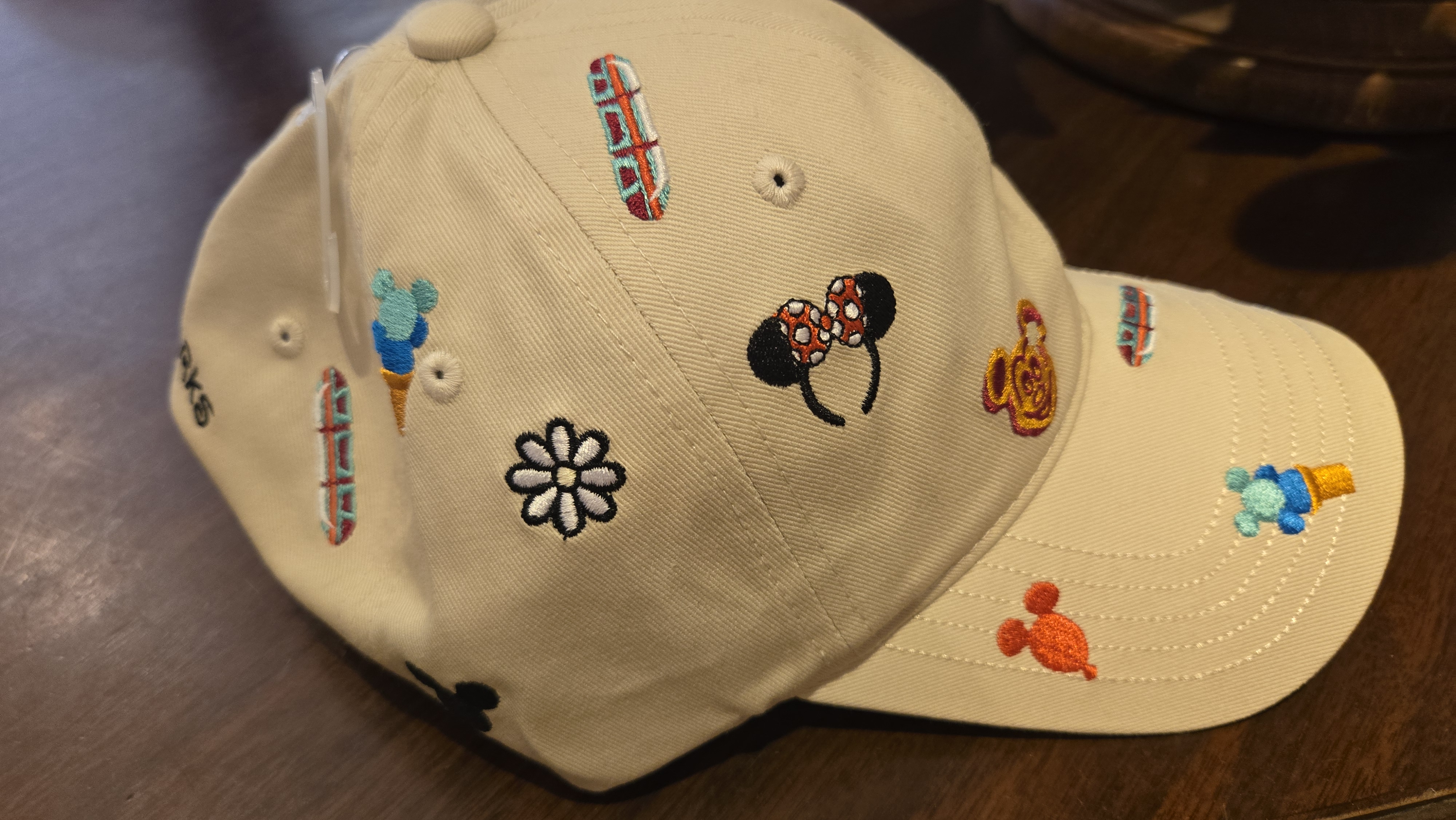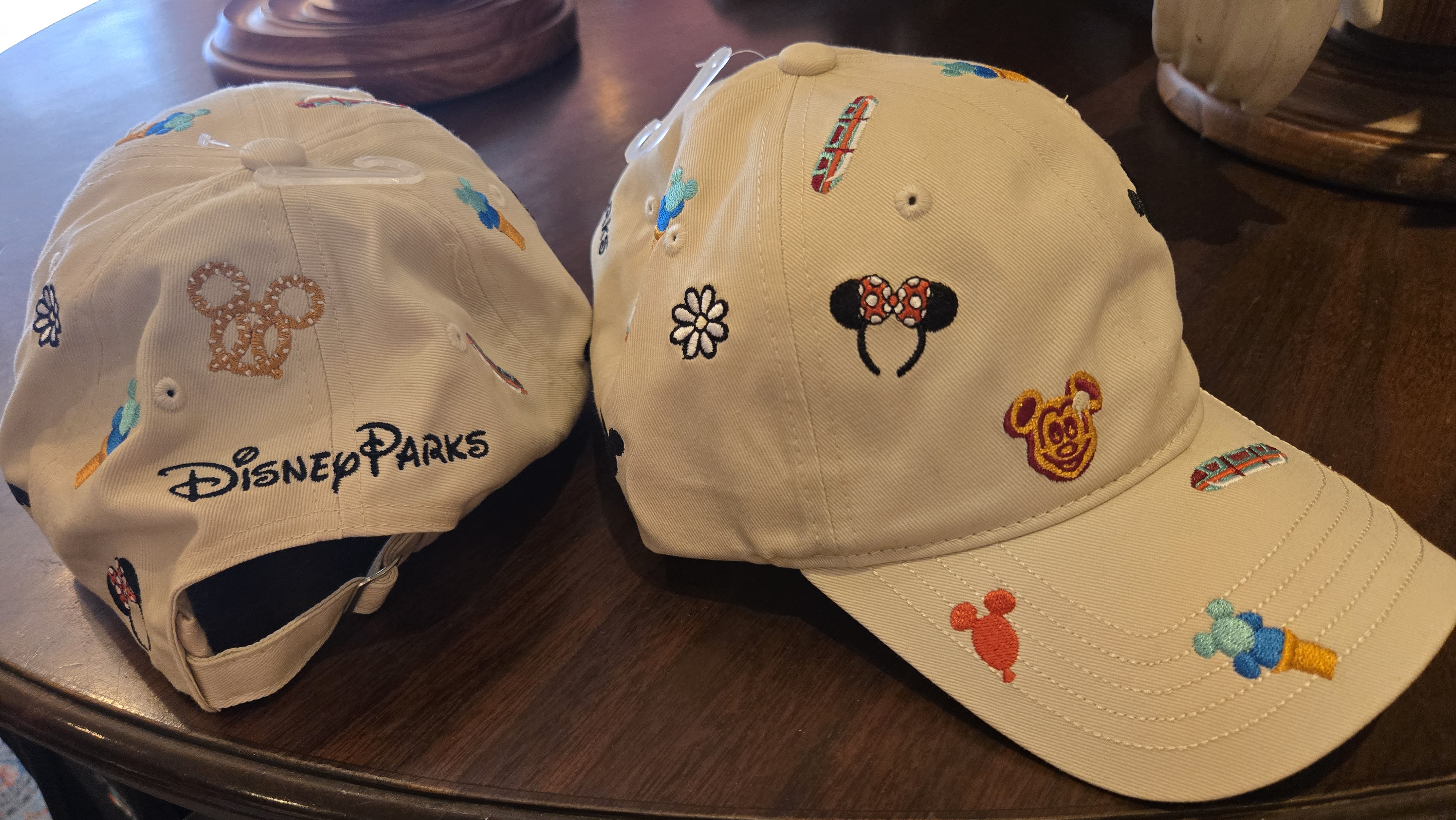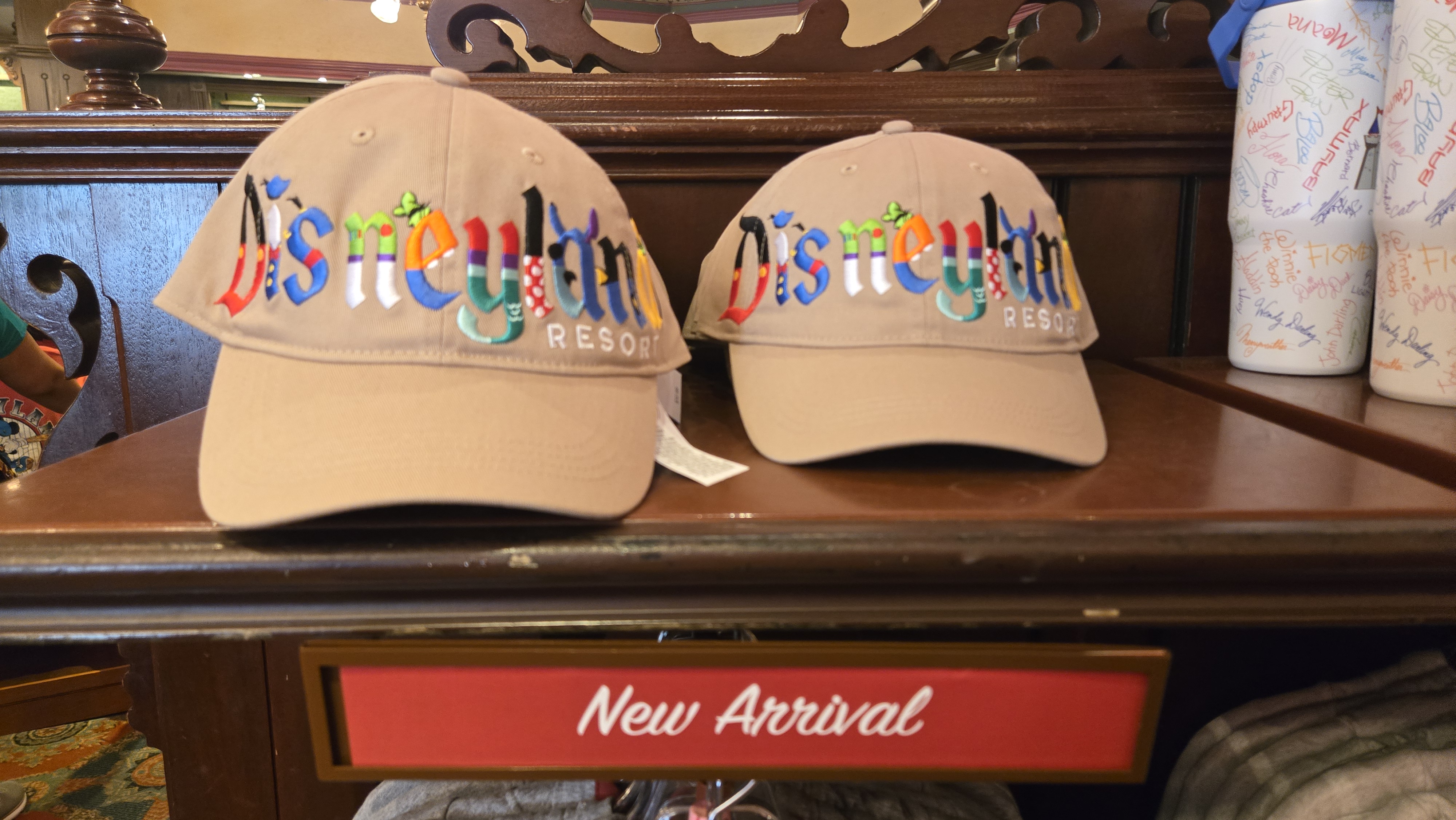 A pair of ballcaps also caught our attention, one featuring "Disneyland" and characters represented in each letter, and another featuring favorite food items and other park-based symbols. This one however, is not Disneyland specific. In fact, it's nowhere specific, instead being branded with "Disney Parks" in lieu of the destination you yourself visited and acquired the hat.