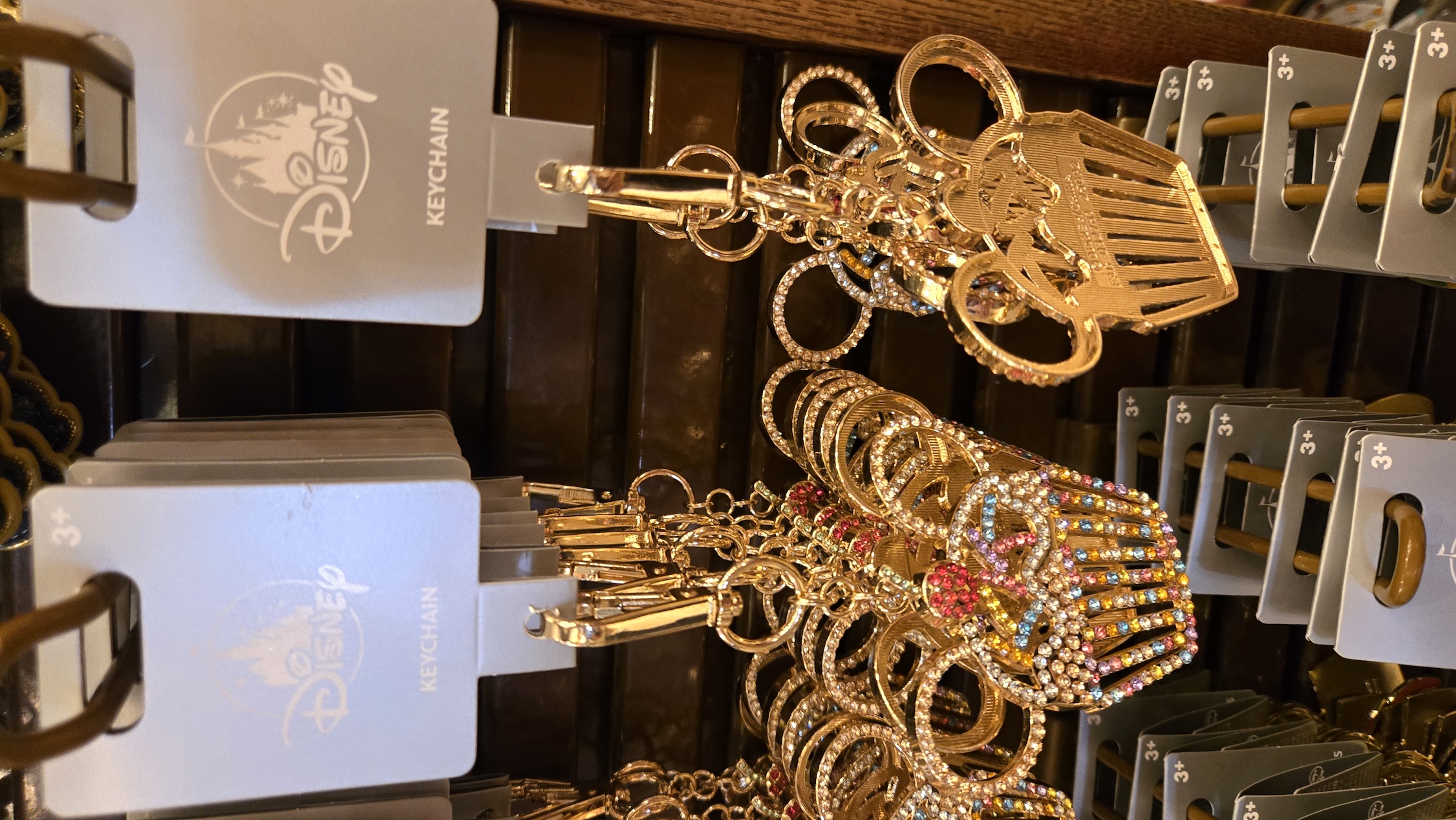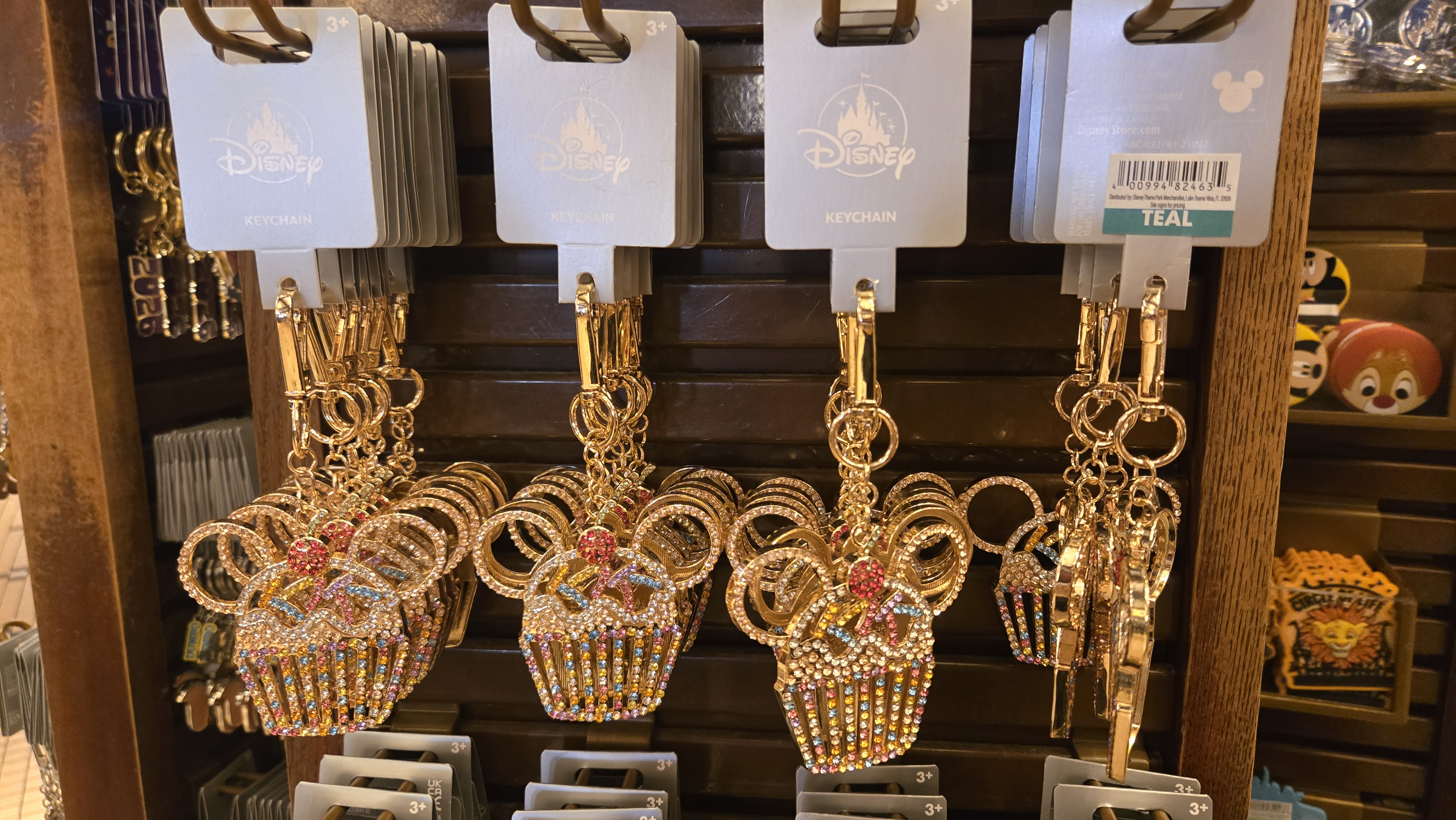Various parks keychains also grabbed our eye, including some destination specific items (DLR=Disneyland Resort) and other shimmering goodness featuring park cupcakes and mouse-ear headbands.