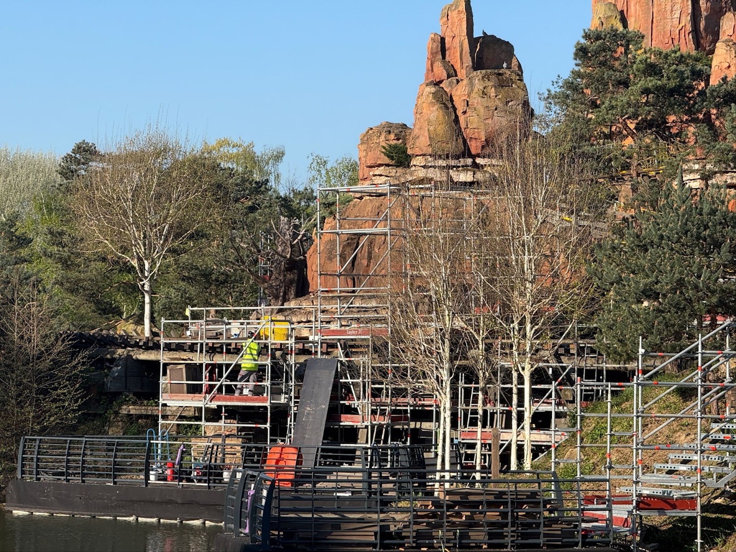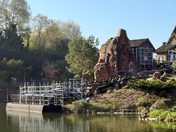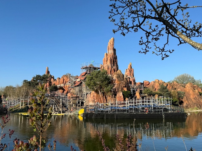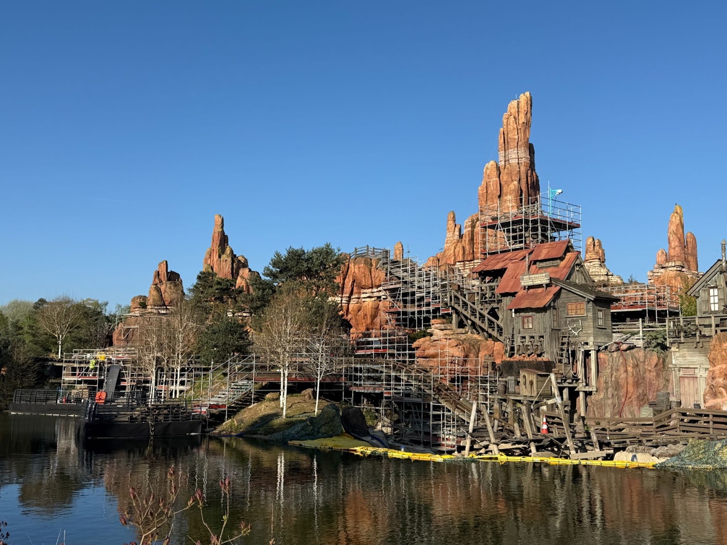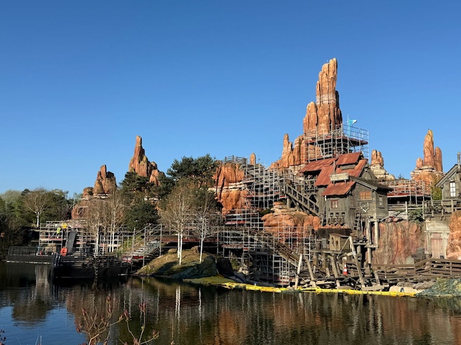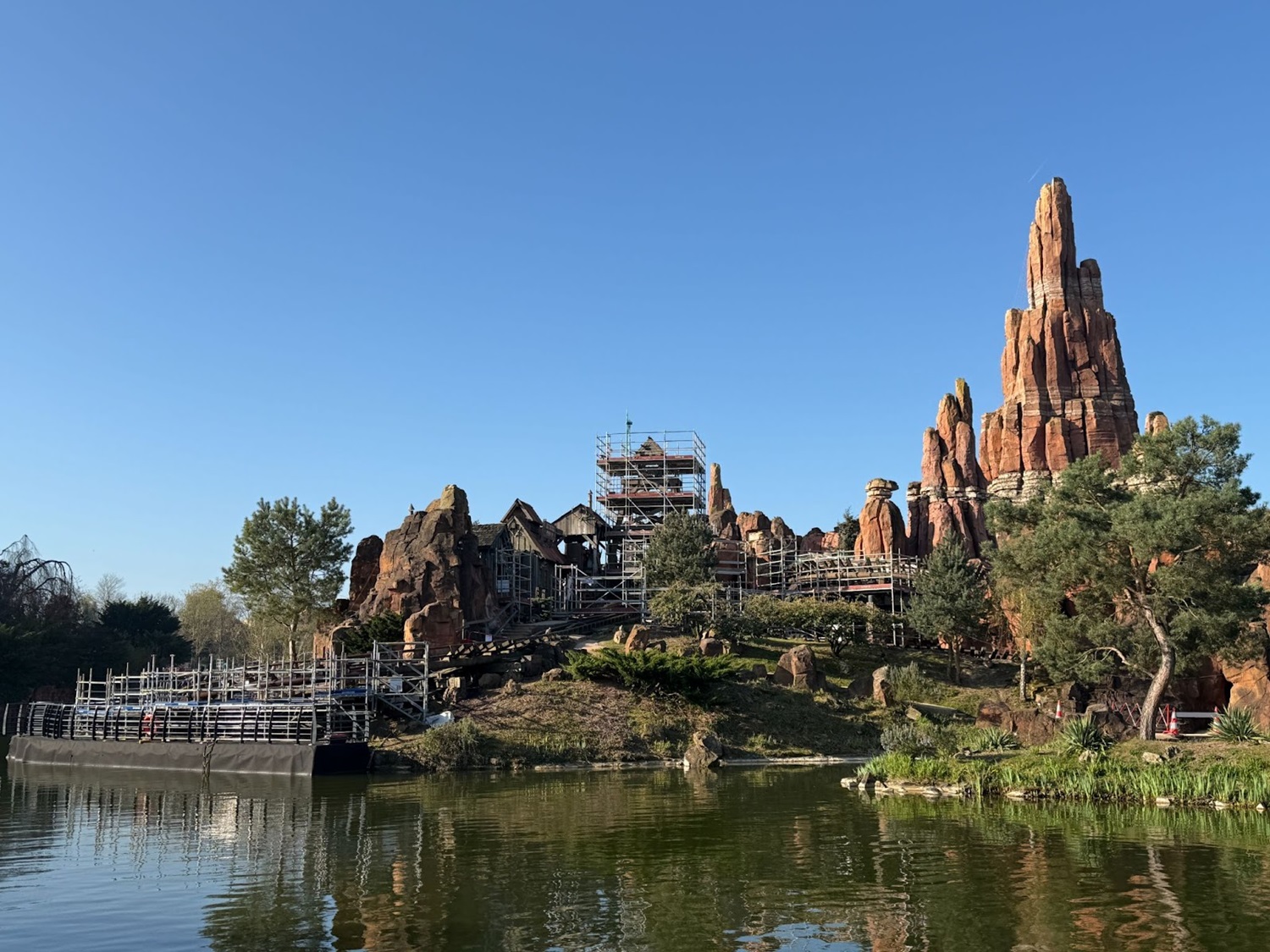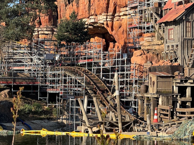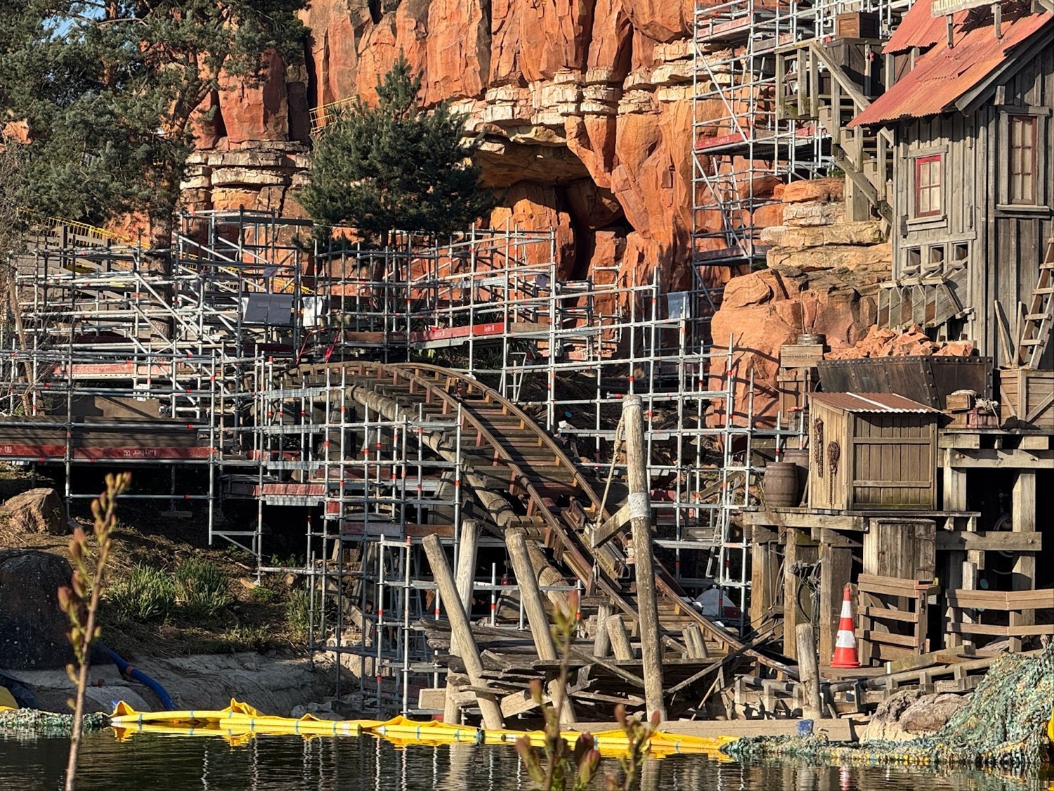 Construction is continuing on Big Thunder Mountain Railroad and the connecting Frontierland areas at Disneyland Paris.