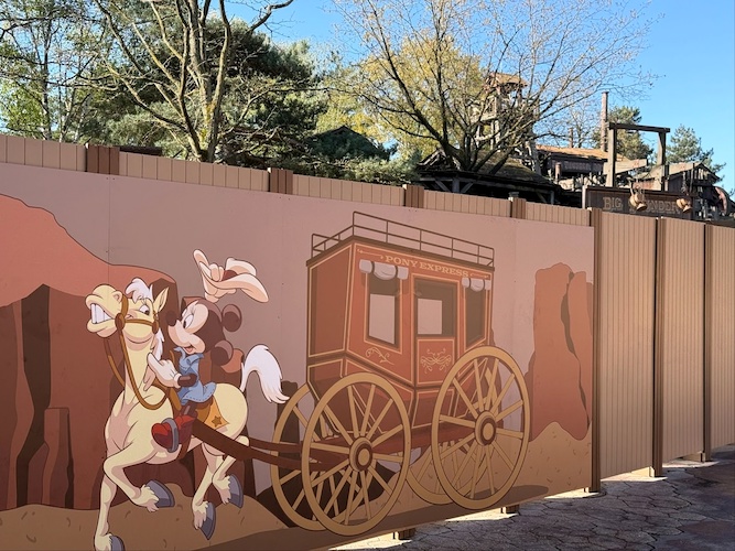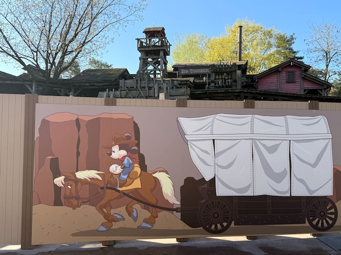 At the very least, the construction walls in the land include adorably themed walls, with Minnie and Mickey Mouse riding horseback through the great frontier.