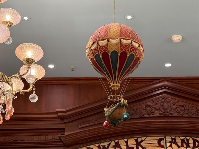 The shop is now sponsored by M&M’s, which can be noticed throughout the shop via mentions of the candies, with some even flying high on hot air balloons.