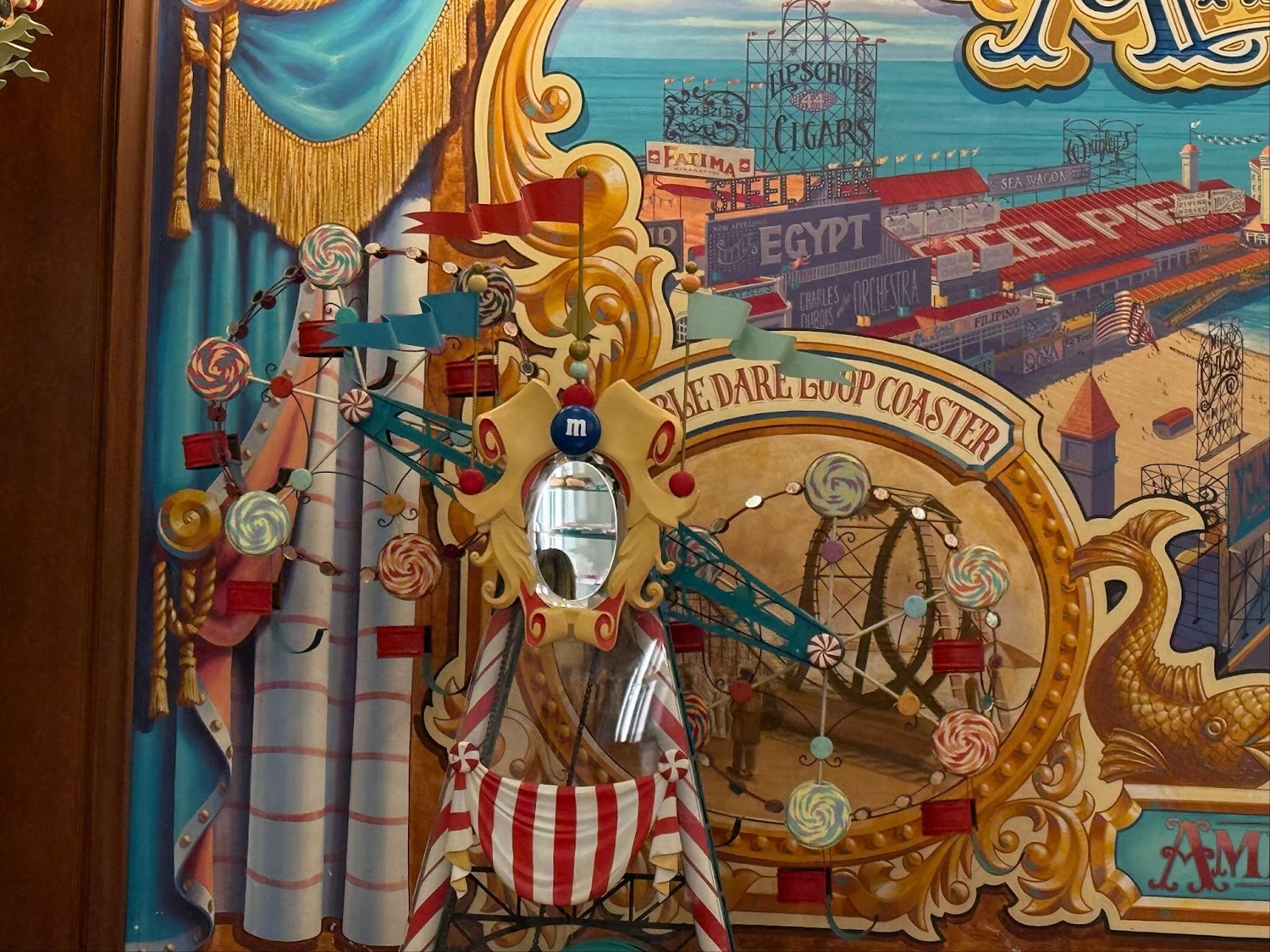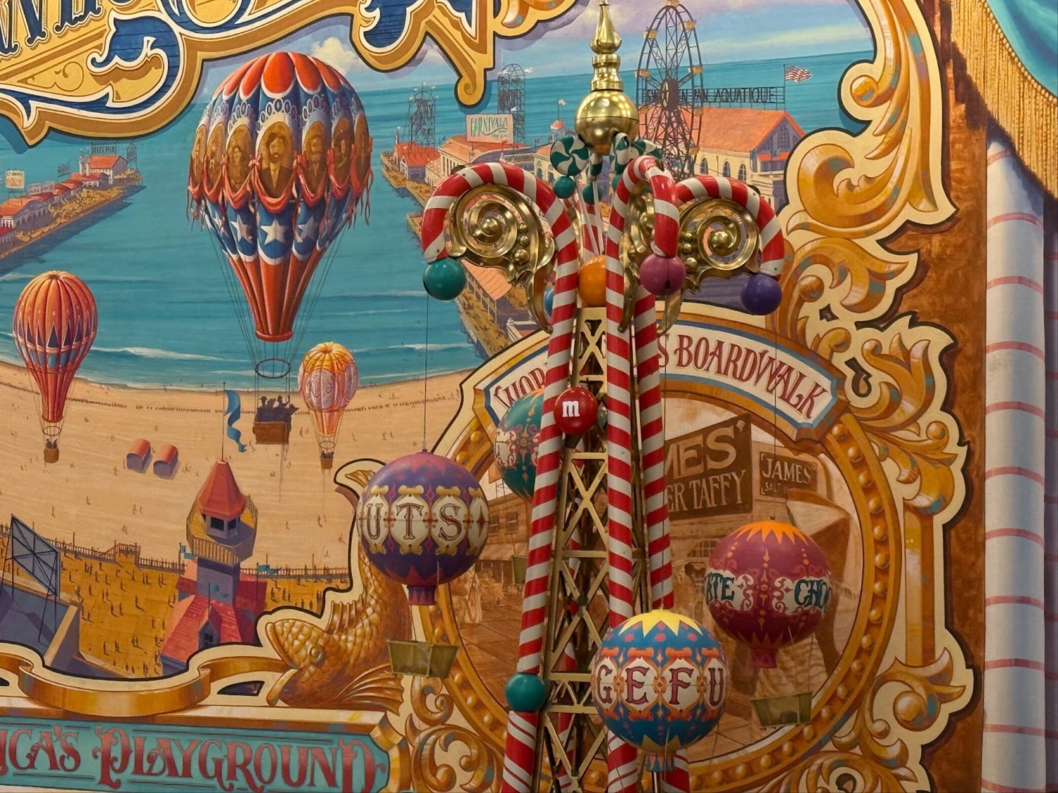 The shop is now sponsored by M&M’s, which can be noticed throughout the shop via mentions of the candies, with some even flying high on hot air balloons.