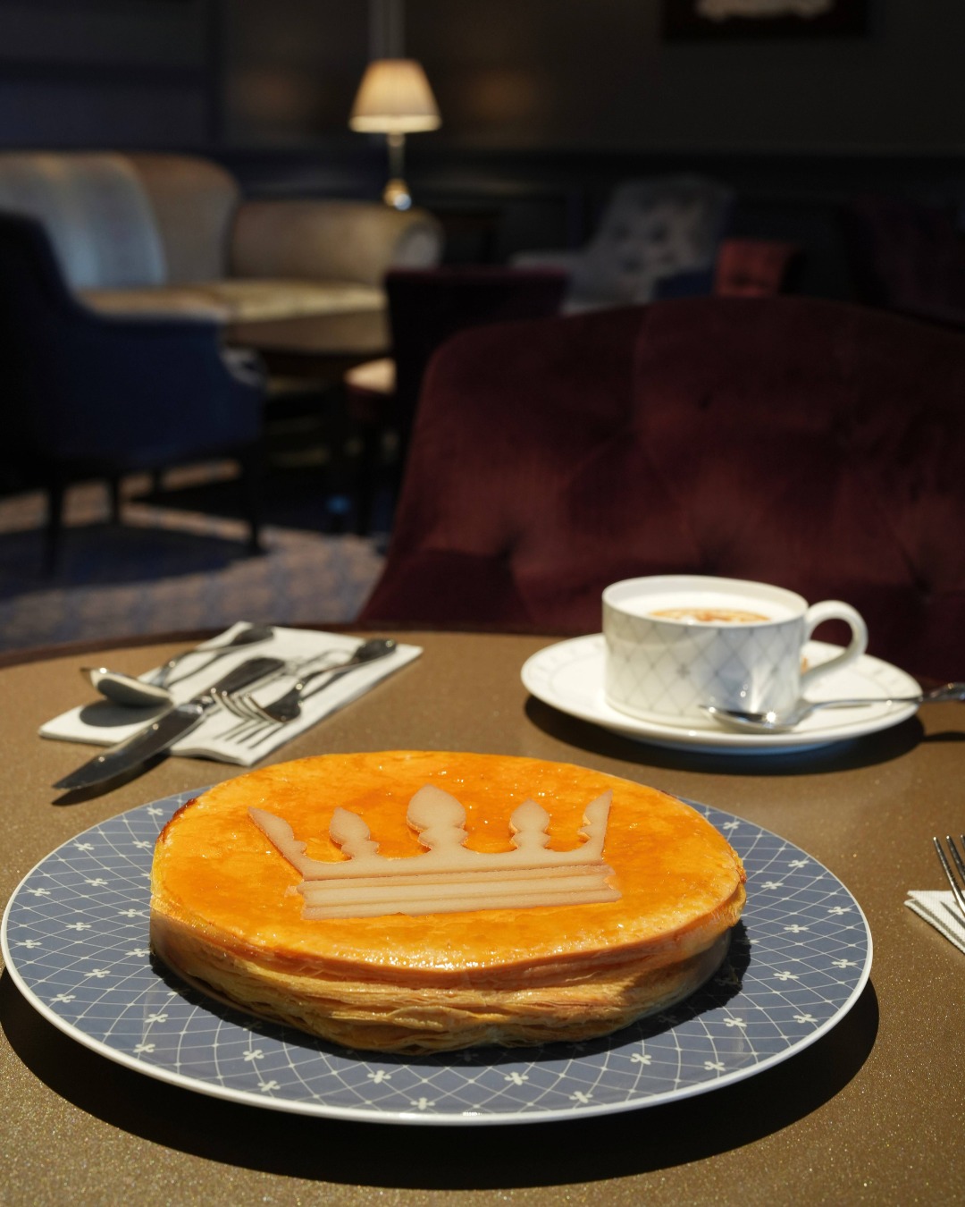 - Pecan crumble galette (puff pastry, almond and pecan frangipane cream, caramel opaline, tuile) – Fleur de Lys Bar