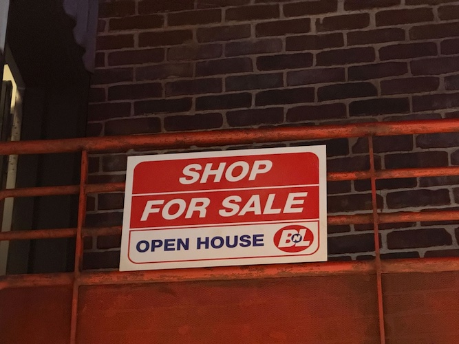 Look up for another Pixar reference, a B&L retail space open house (from WALL-E).