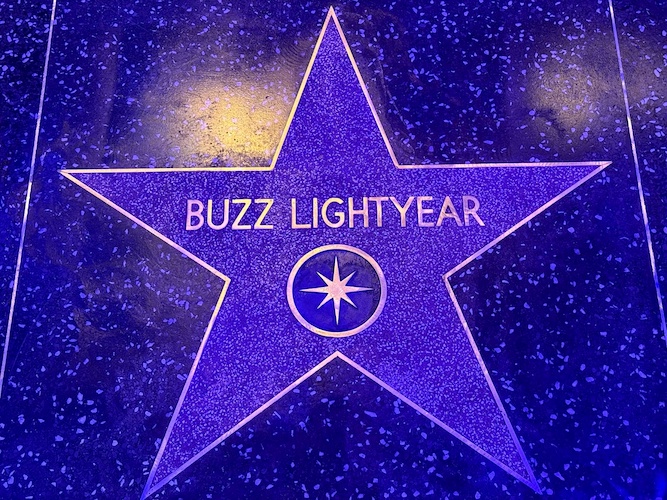 Look down for World Premiere’s own version of the Hollywood Walk of Fame, featuring characters from films you can (or will be able to) engage with in Disney Adventure World.
