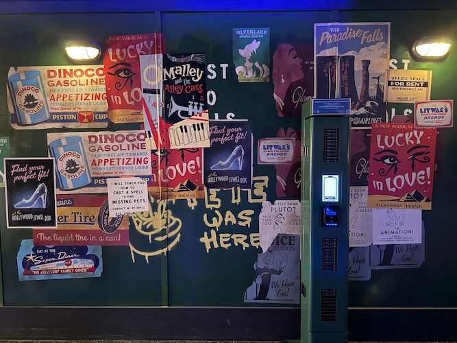 The iconic Hollywood sign is part of the mural, along with another Easter Egg, a billboard for the Broadway version of The Lion King. The Tony-winning production has had two extended runs at L.A.’s Pantages Theater (2000-2003, 2020-2023), and Disney spent $10 million restoring the Pantages for the show’s first Hollywood run.