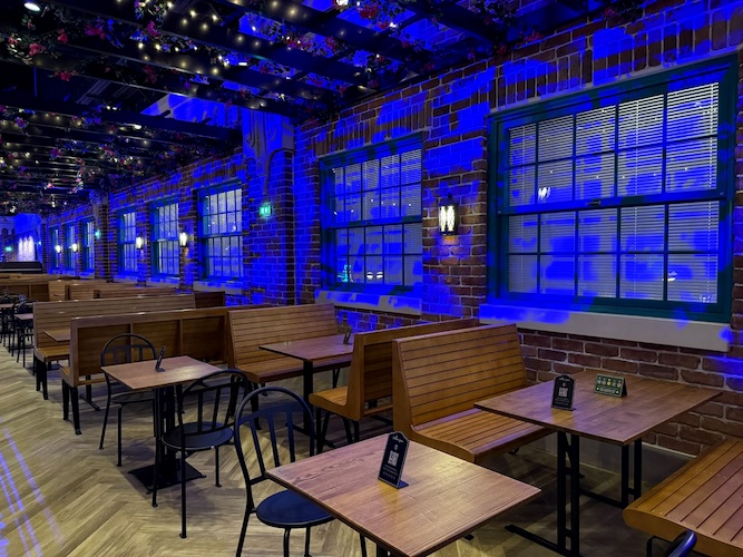 Hungry? You can grab a bite to eat at The Hollywood Gardens, an indoor quick-service restaurant designed to look like you’re outdoors.